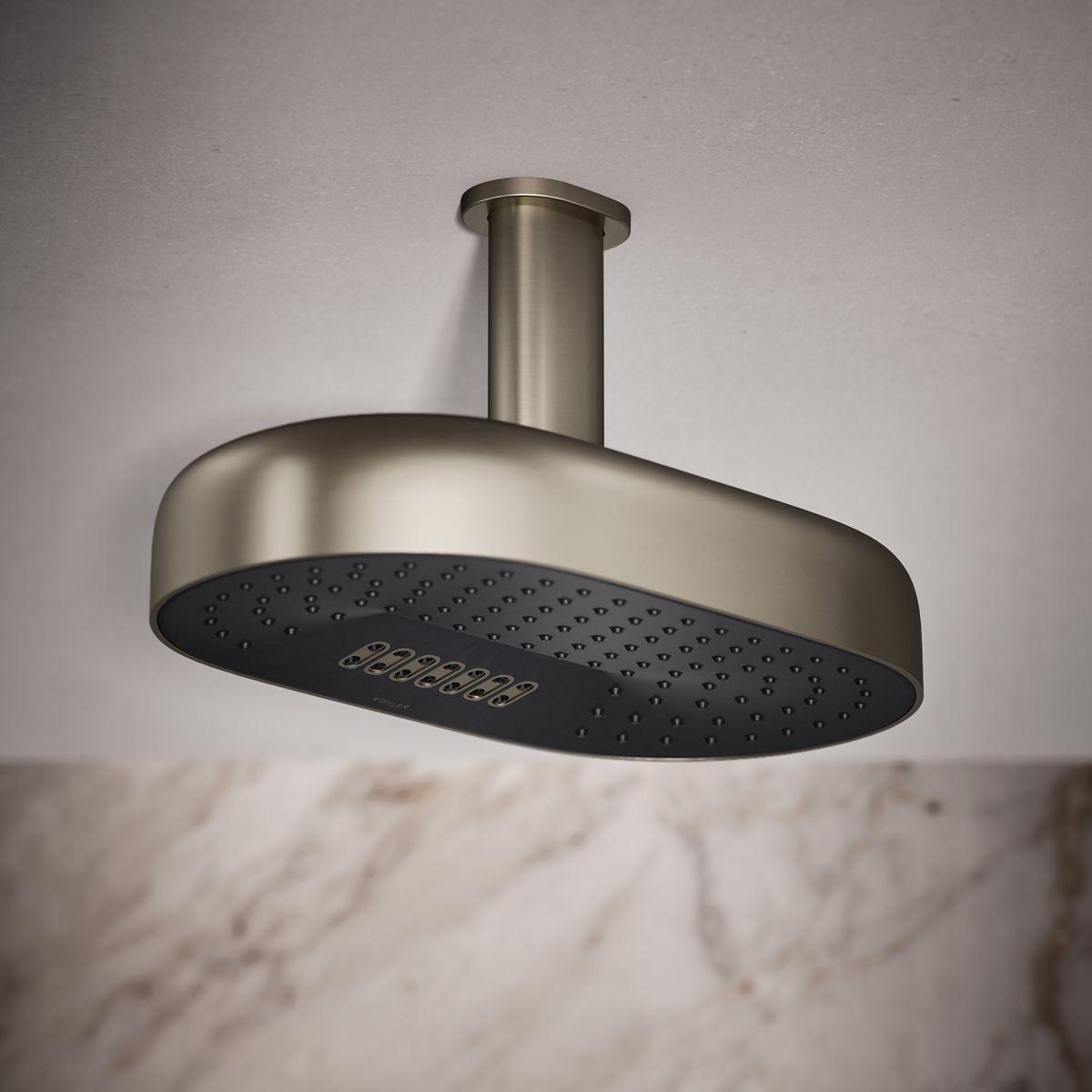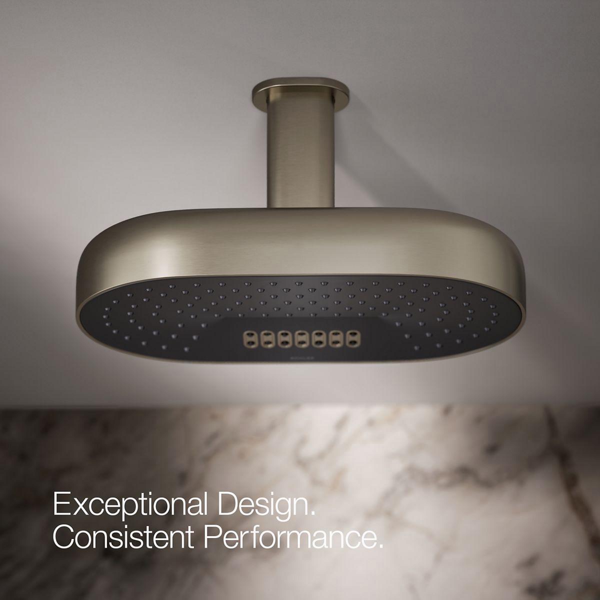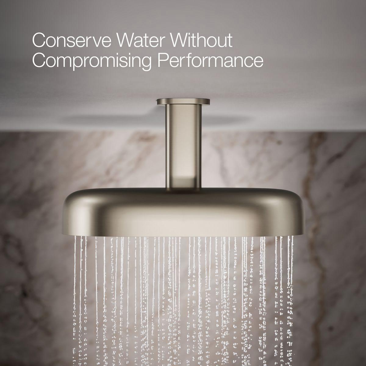 Relax in a shower that simulates a warm summer rain and targets sore shoulders with swirling kinetic streams—two distinct experiences, each available separately within one rainhead at a water-saving 1.75 gpm flow rate. Choose from Full Coverage with Katalyst air-induction technology, mixing air and water to produce large water droplets for a powerful, consistent overhead shower spray experience, and more-focused Deep Massage kneading streams, angled to relieve sore muscles. The innovative two-function rainhead also boasts a contemporary, minimalist design that coordinates with many KOHLER faucets and accessories.