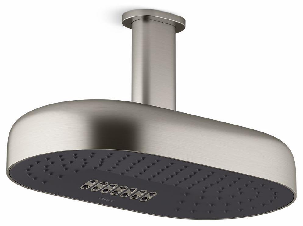 - Dual-function oblong rainhead features Full Coverage with Katalyst technology, a drenching spray experience ideal for rinsing shampoo from hair.