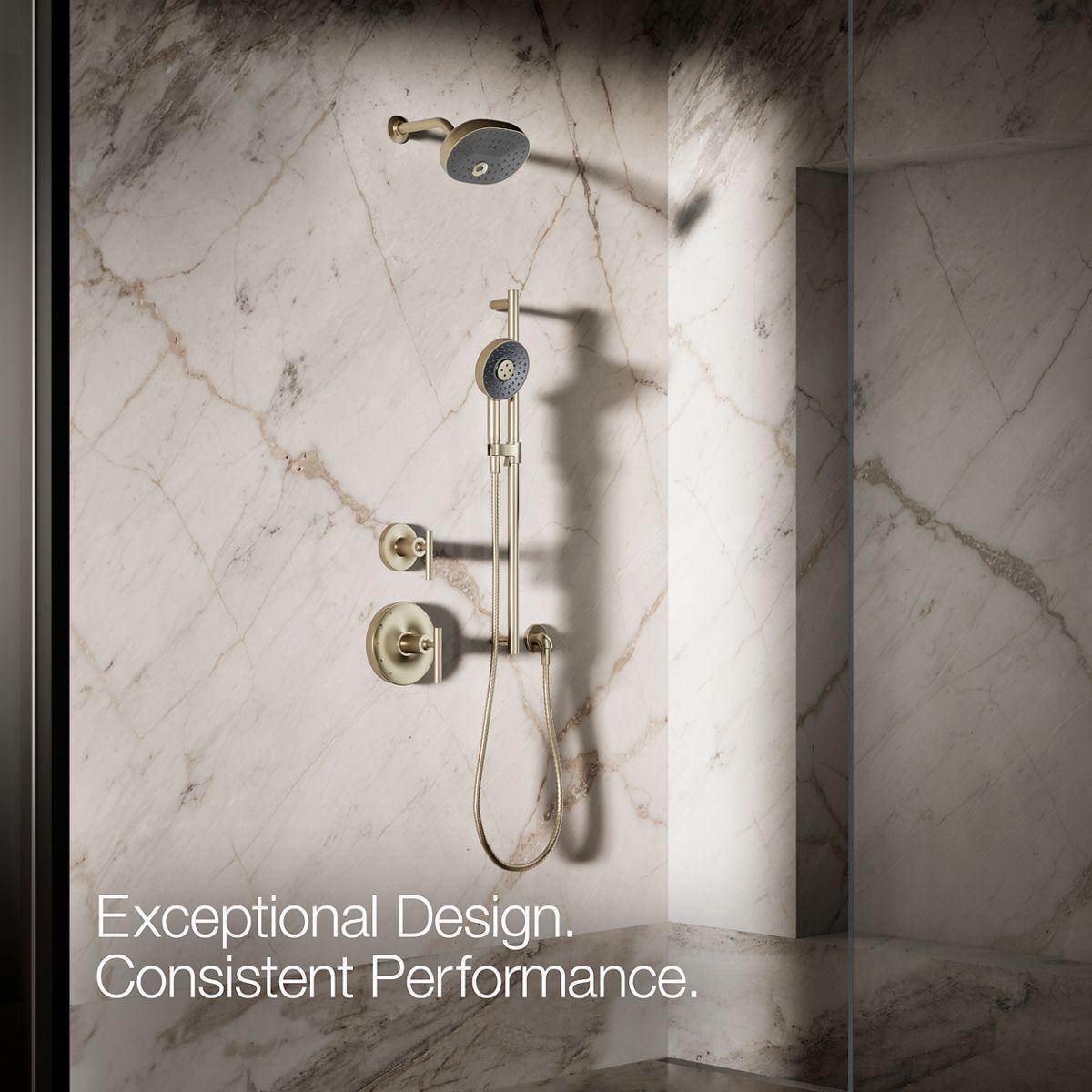 Enjoy the flexibility of a handshower that rinses, restores, and targets sore muscles—all at the touch of a button. The Statement round multifunction handshower lets you choose between Full Coverage with Katalyst air-induction technology for large luxurious water drops, a super-fine silky Cloud spray experience, and more focused, Deep Massage kinetic cross-streams. The three-function handshower features an intuitive mode selector button for switch the spray. Its sleek, minimalist design complements many KOHLER faucets and accessories.