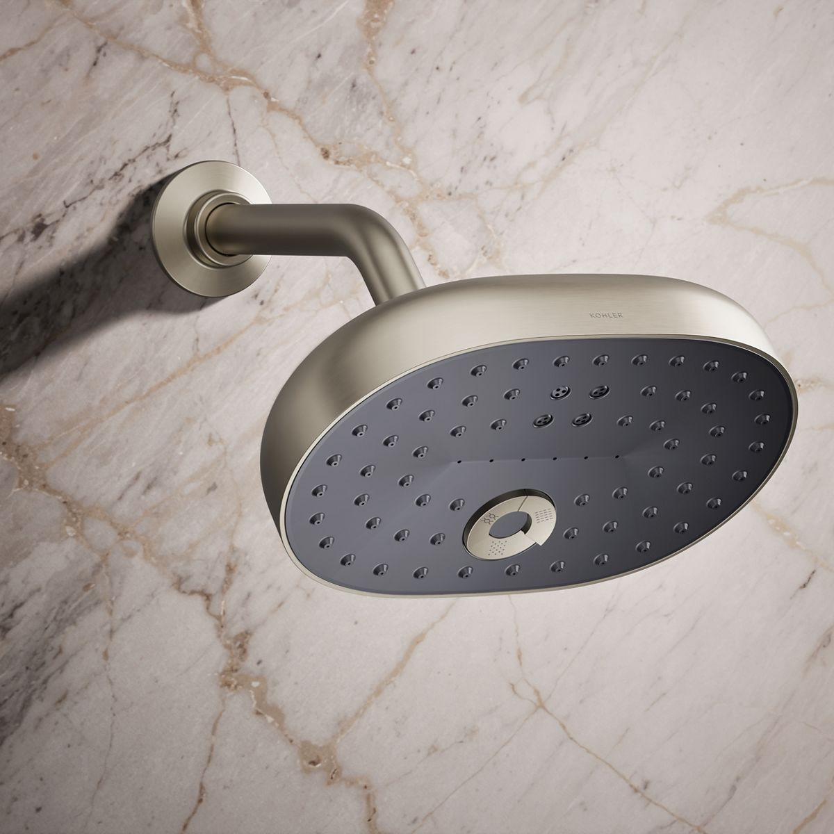 Relax in a shower that fully soaks, restores, and targets sore muscles--all at the touch of a button and while conserving water. The oblong Statement multifunction showerhead with 1.75 gpm lets you choose between Full Coverage with Katalyst air-induction technology for a drenching spray experience, a super-fine luxuriously soft Cloud spray experience, or more-focused, Deep Massage kinetic cross-streams, angled to relieve sore muscles. The multifunction showerhead features intuitive mode selector buttons and comes attached to an offset ball joint for 180° rotation, adjusting to any body height. Its sleek, minimalist design complements many other KOHLER faucets and accessories.