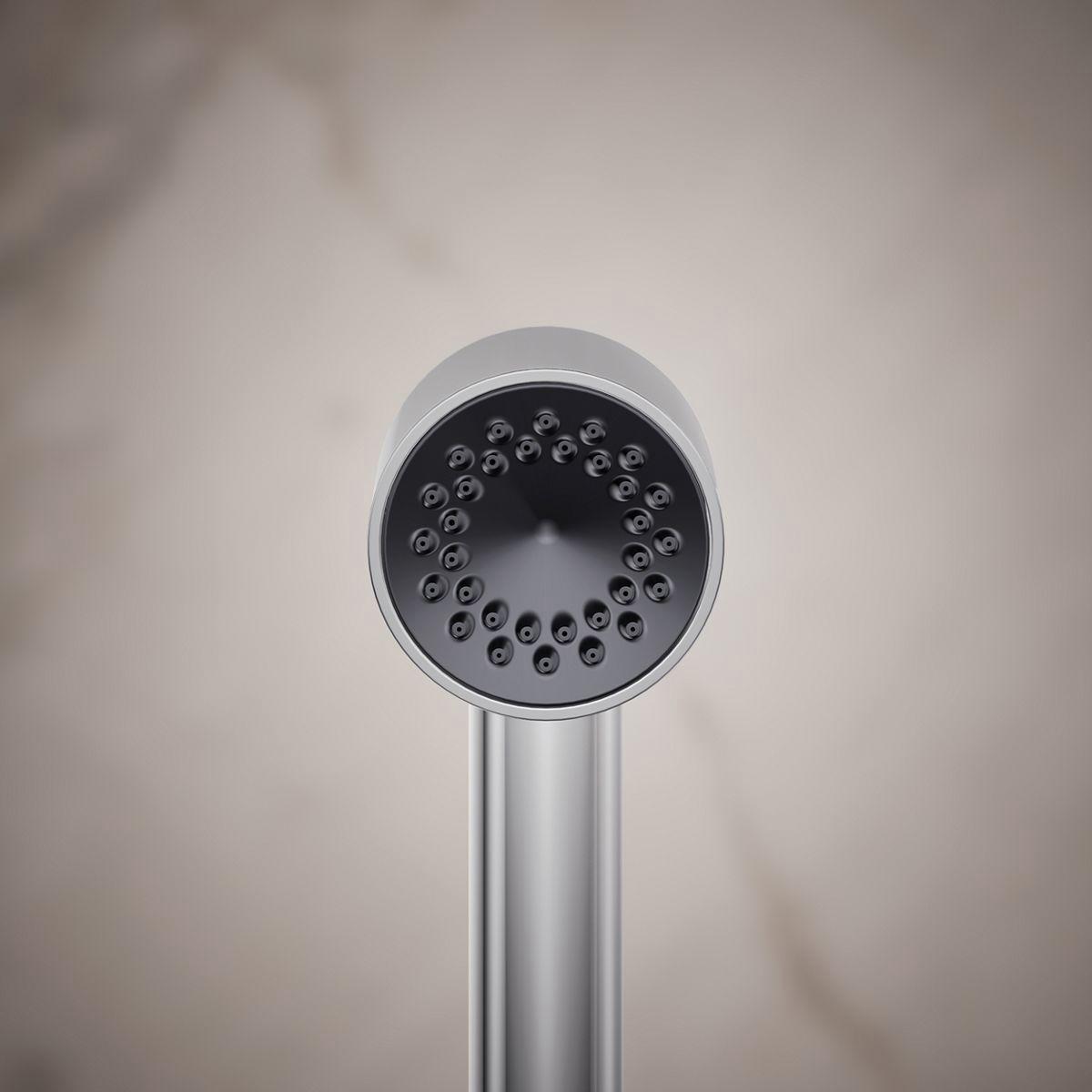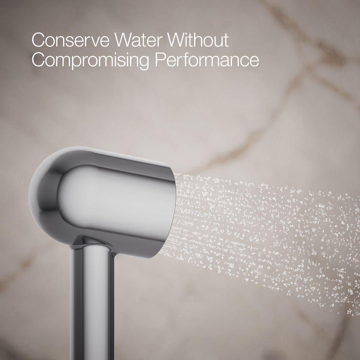 Power your shower with the flexibility of the Statement iconic 2.5 gpm handshower, featuring the unique Infinity spray that provides three spray experiences in one. The hourglass-shaped spray starts with a powerful rinse in the upper zone, converging into a massaging middle stream, then diverging into broad, everyday warmth and coverage in the lower zone. The compact barrel-shaped handshower features a sleek, minimalist design and durable finishes that coordinates with many KOHLER faucets and accessories.