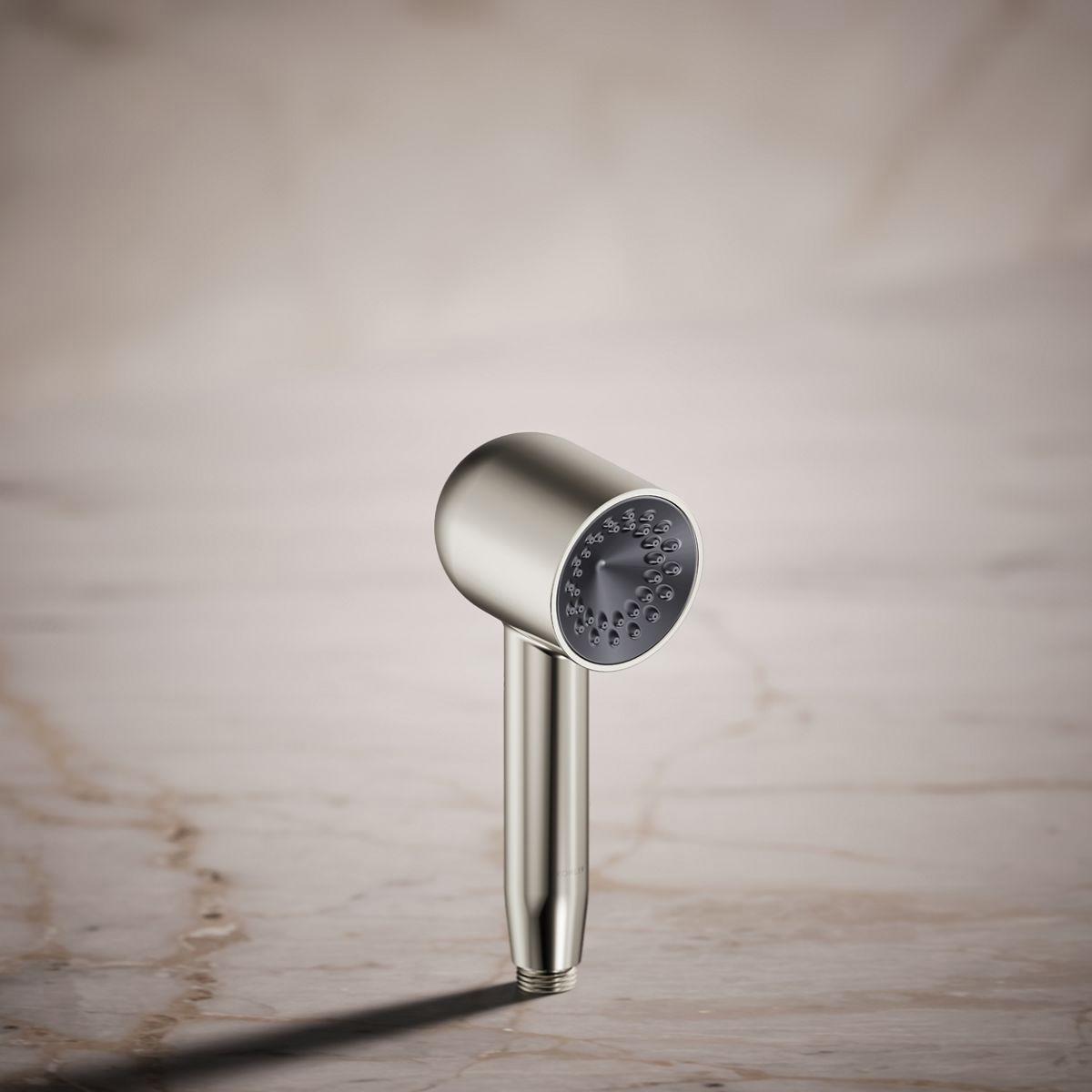 Power your shower with the flexibility of the Statement iconic 1.75 gpm handshower, featuring the unique Infinity spray that provides three spray experiences in one--all while conserving water. The hourglass-shaped spray starts with a powerful rinse in the upper zone, converging into a massaging middle stream, then diverging into broad, everyday warmth and coverage in the lower zone. The compact barrel-shaped handshower features a sleek, minimalist design and durable finishes that coordinates with many KOHLER faucets and accessories.
