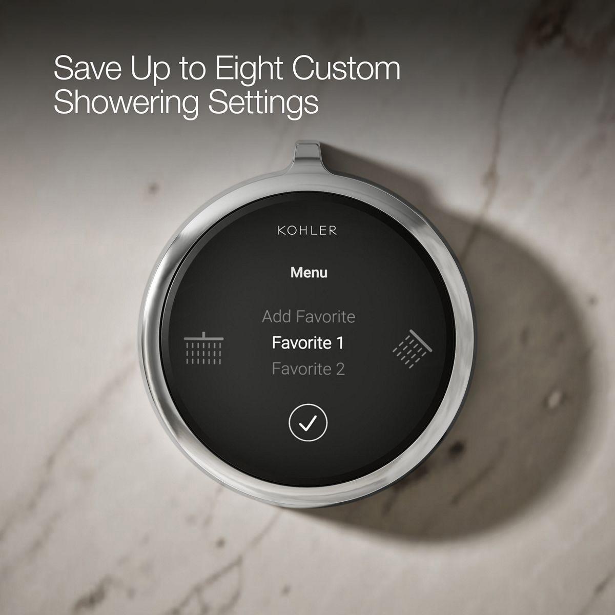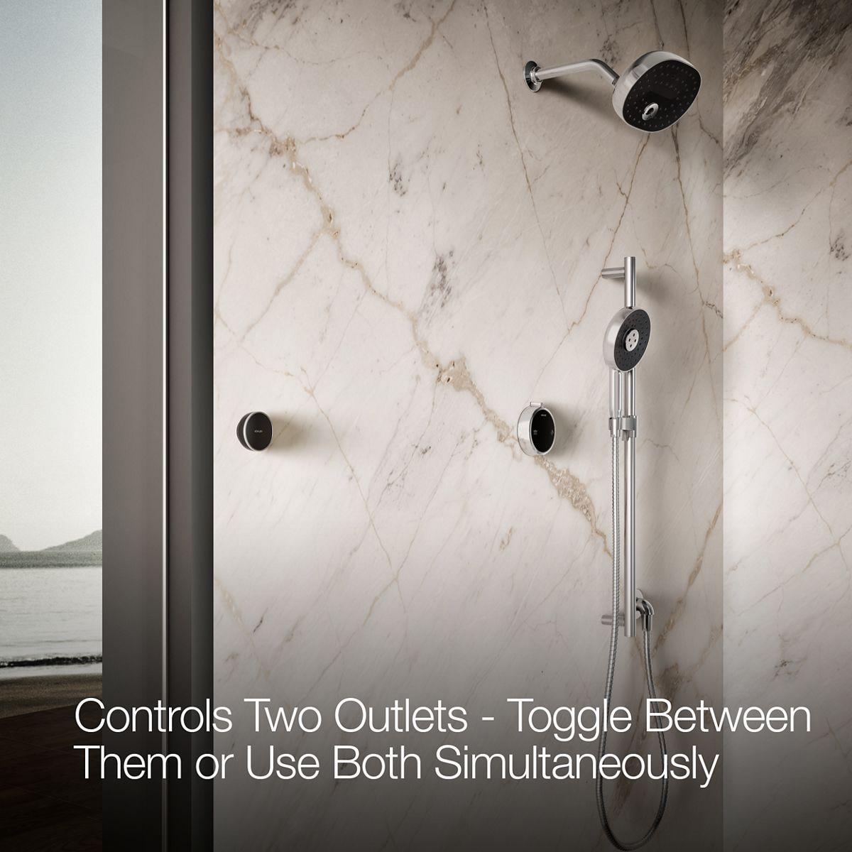 Easy. Personal. Precise. Transform your shower routine into a luxurious ritual with the KOHLER® Anthem Duo two-outlet shower digital control. Combining a sculpted dial and intuitive touch-screen display, this refined interface offers exact temperature control and seamless management of two shower outlets when paired with the Anthem two-port digital thermostatic valve. Customize your experience with eight user presets, eco-mode for water conservation, and features like warm-up, pause, and the invigorating ice shower. Anthem Duo also tracks your water usage in real time, so you'll be empowered to make sustainable choices without sacrificing comfort. This innovative digital control provides the ultimate convenience while utilizing thermostatic valve technology to ensure safe, consistent water temperatures. Elevate your bathroom with minimalist style, personalized comfort, and precise operation—all at your fingertips—with the easy-to-use Anthem Duo digital control.