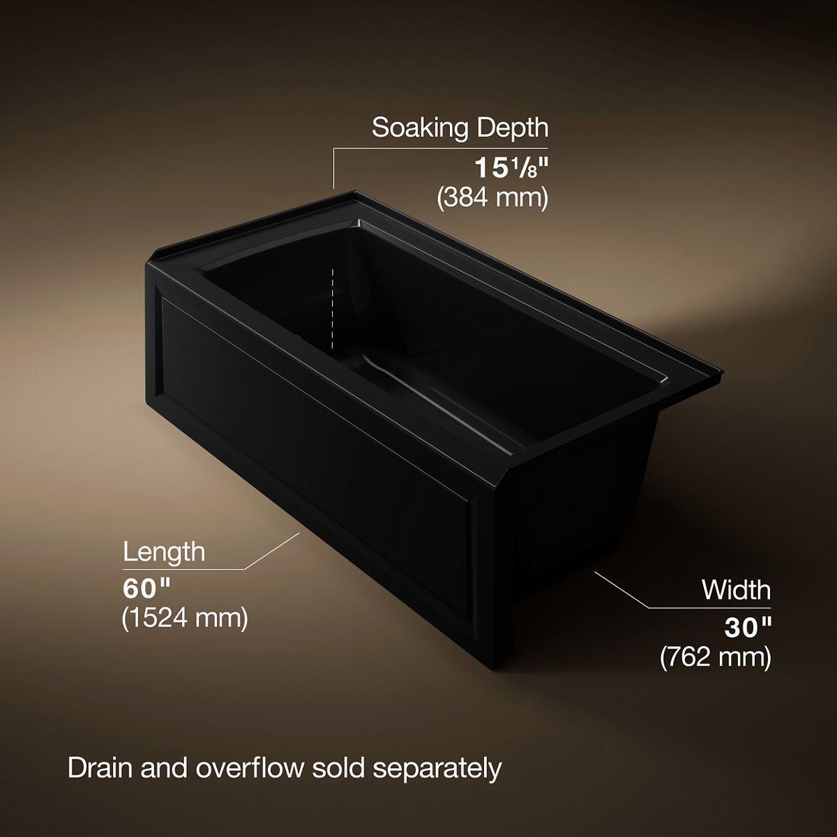 - Slotted overflow allows for deep soaking.