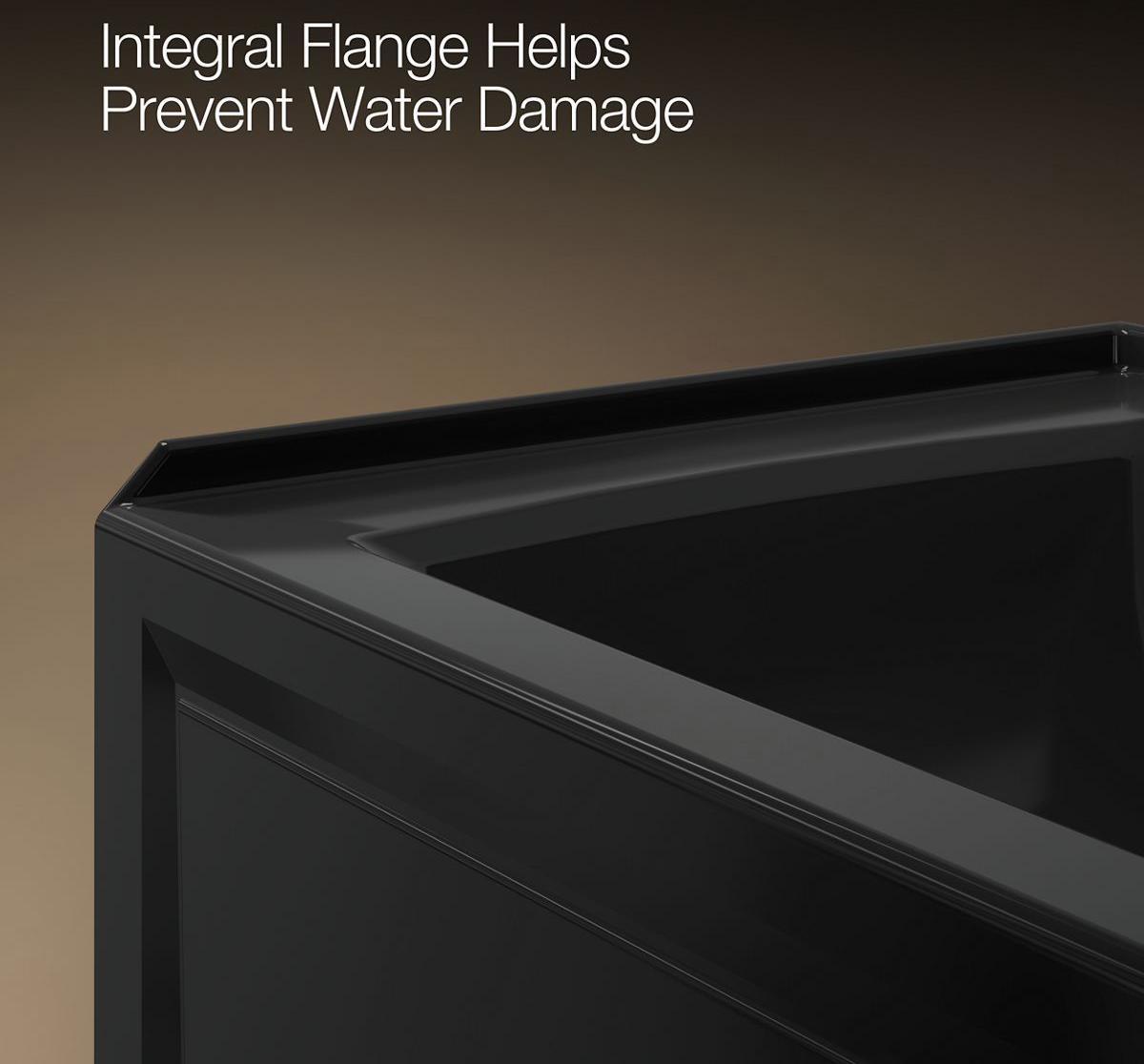 - Integral flange helps prevent water from seeping behind wall and simplifies alcove installation.