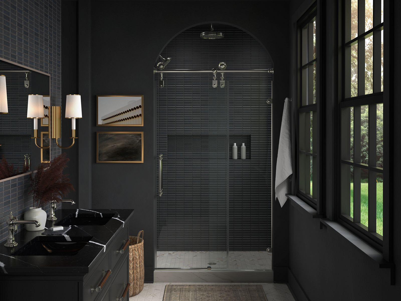 Add the final touch to your showering space with the luxurious, frameless Artifacts sliding shower door. This traditional design includes exposed rollers engineered to glide across a heavy-duty top rail, offering a bold style statement and smooth operation. The door stands 80-7/8 tall for ample walk-through clearance and features elegant Victorian-inspired back-to-back handles for easy entry and exit. This shower door includes heavy 3/8-thick tempered glass and simple installation with out-of-plumb adjustability on both the fixed and sliding glass panels. Available in many finishes that match Artifacts bathroom faucets and accessories, you will create an environment to behold.