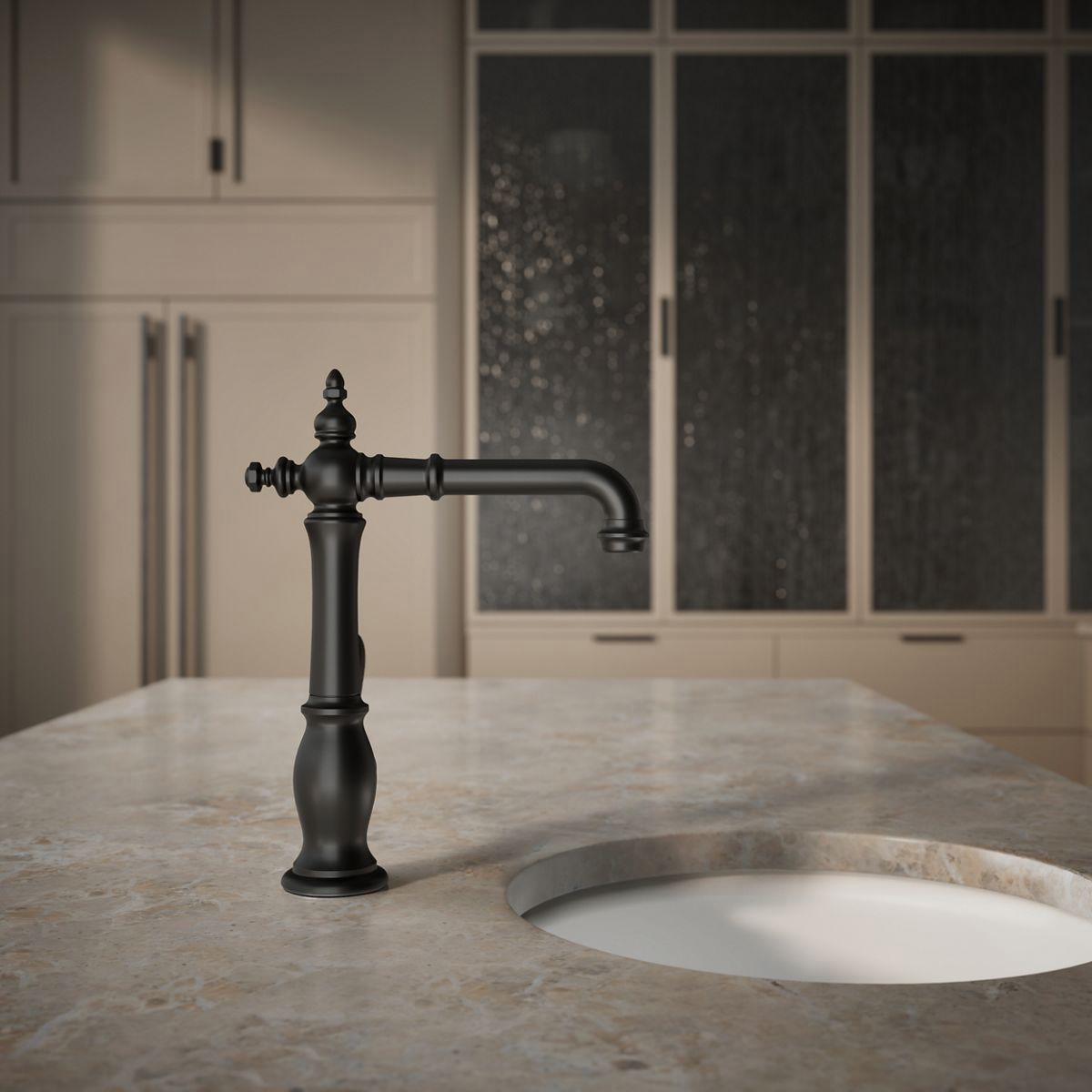 The Artifacts faucet collection brings you classic designs reimagined in fresh new ways for various task areas of the kitchen. This Victorian-inspired bar sink faucet features an elegant column design with convenient swing spout.