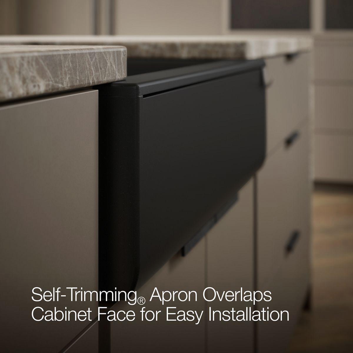 - Self-Trimming® apron overlaps cabinet face for easy installation and beautiful results