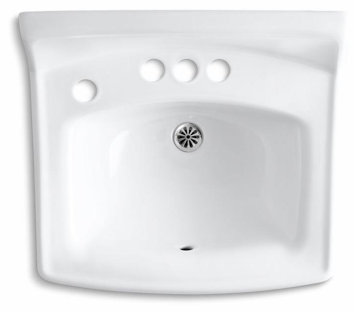 When your lavatory needs to stand up to rigorous use, depend on premium KOHLER materials. Crafted of vitreous china with our exclusive KOHLER glaze, this Greenwich wall-mount lavatory will provide a lifetime of beauty and reliable performance. Its remarkably hard, glossy finish protects the surface for a clean, sanitary sink that maintains its shine under repeated use. This model has drillings for a concealed arm carrier, and a soap dispenser hole on the left hand side.