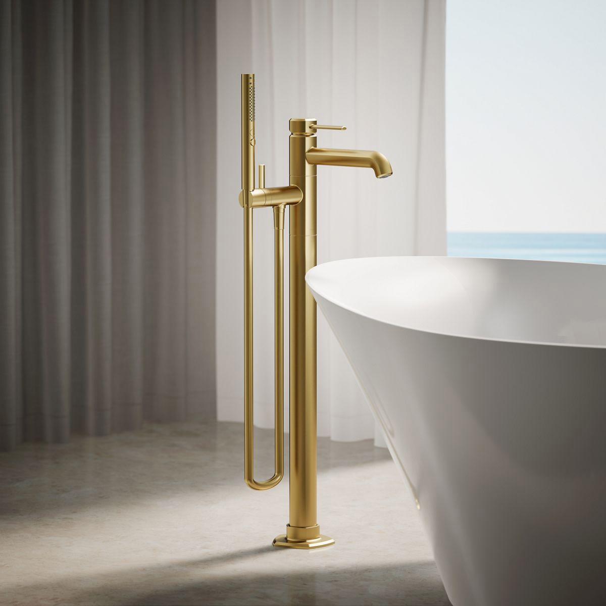 Occasion Floor Mount Tub Filler Trim With Hand Shower - Vibrant Brushed Moderne Brass T27025-4-2MB Kohler