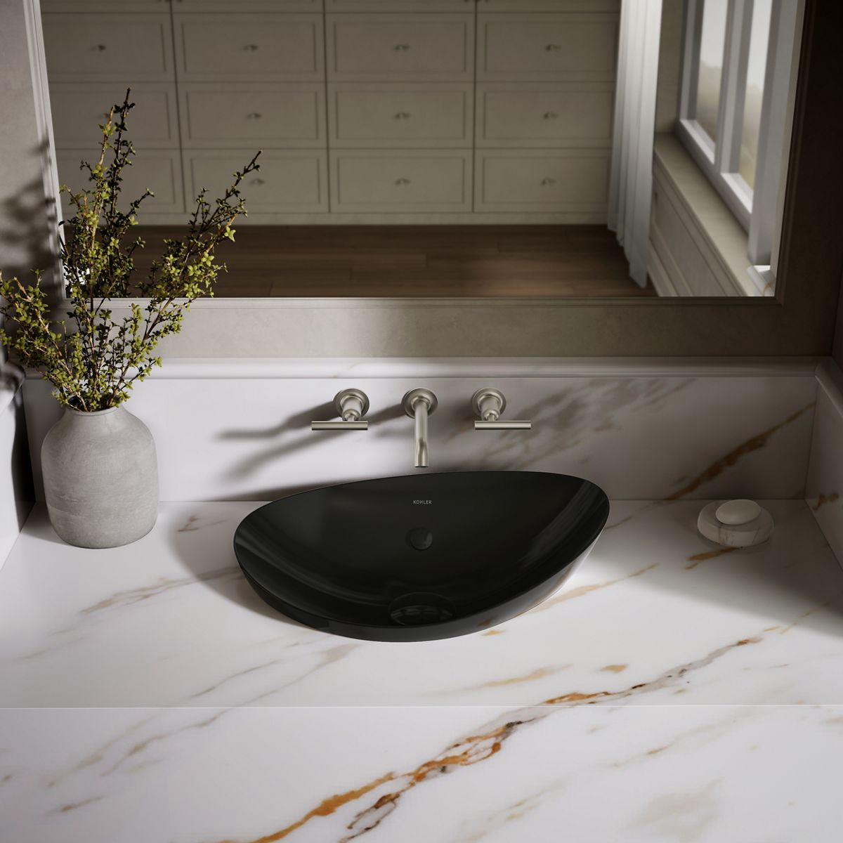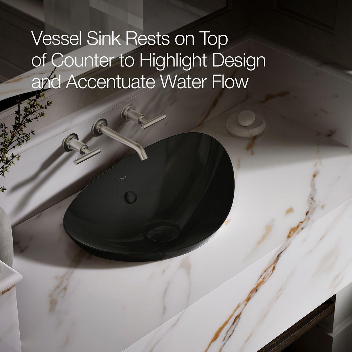The Veil vessel-mounted bathroom sink features flowing and immaculately balanced curves that evoke a sculpted simplicity in tune with contemporary style. Enhanced by a high-gloss finish, the basin's sleek, organic shape is easy to clean. At Kohler, we make it our business to help you create the bathroom space of your dreams.