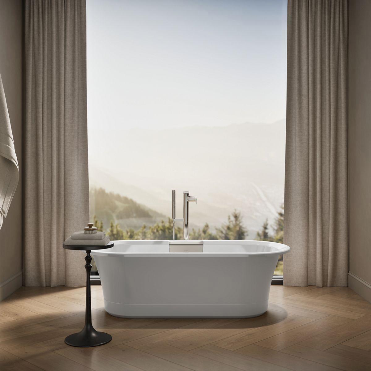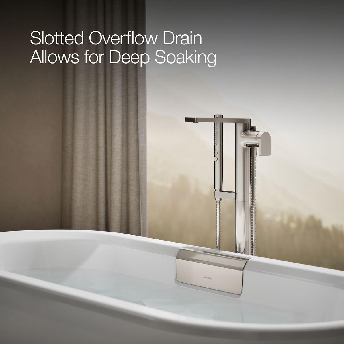 The Volute freestanding bath collection is a contemporary take on the classic charm of KOHLER enameled cast iron. Designed to make an enduring statement of beauty, KOHLER enameled cast iron is scratch- and stain-resistant. The modern lines of the collection’s design combine with the timeless allure of the cast iron to create an unforgettable look in any bathing space. Available in two shapes and as many sizes, the Volute freestanding bath collection also offers you the choice of a shroud or bath base in black or white. And because Volute baths are manufactured with the drain and overflow preinstalled, they are less complicated to set up. To complete your bath, K-36361 drain trim kits are available in several finishes to coordinate with KOHLER bathroom faucets and accessories.