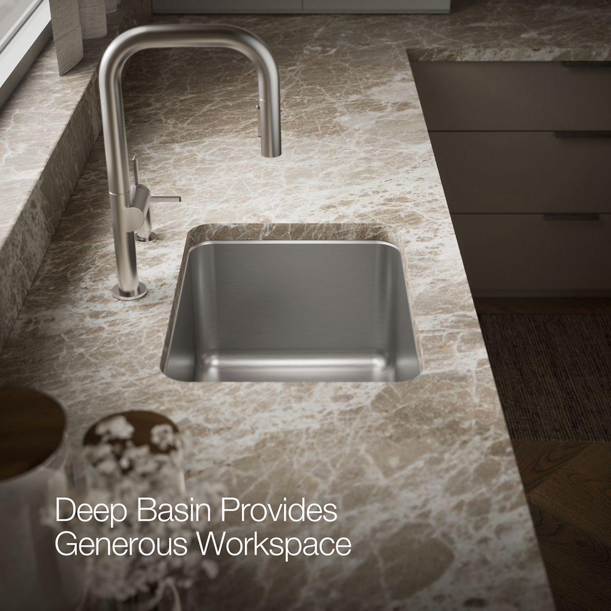 The Undertone utility sink is an ideal choice for kitchens and laundry areas. Constructed from durable stainless steel, this deep basin offers generous room for household tasks. An engineered sound-absorption system significantly reduces dishwashing and disposal noise.
