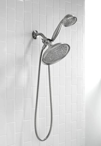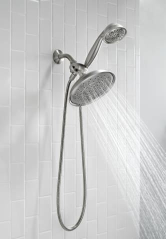 Spot resist brushed nickel 9" diameter spray head standard with handshower showerhead