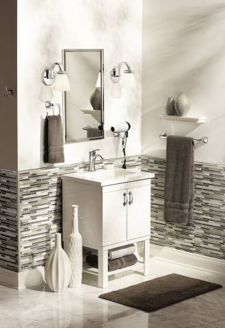 Crisp edges and uncomplicated style features give the Voss collection an ageless, yet fashion-forward, presence. Each silhouette brings a confident transitional style to the bath.