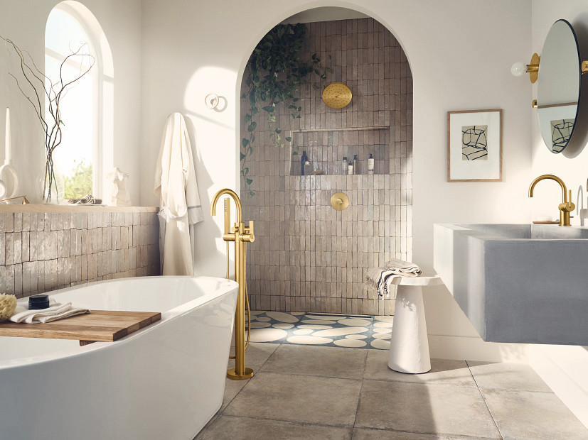 - brushed gold pairs rich, warm tones with lush texturing for a timeless finish