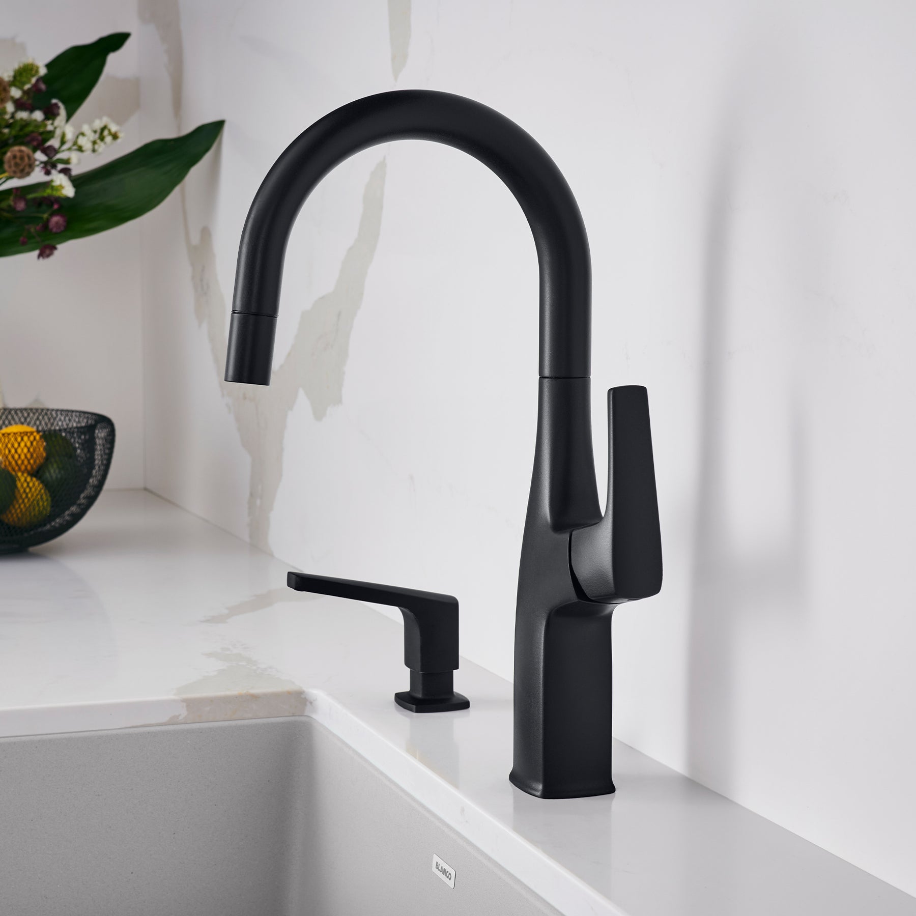Rivana Bar/Prep Faucet with Pulldown Spray - Matte Black 443021 Blanco
