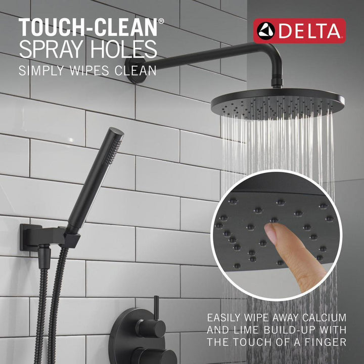 This Modern Collection offers a streamlined, contemporary design and the components you need for a complete shower. While other products may gather unsightly mineral buildup over time, soft rubber Touch-Clean spray holes allow any mineral residue to simply be wiped away for an instantly refreshed look with no need for soaking or the aid of chemical cleaners. WaterSense labeled faucets, showers and toilets use at least 20% less water than the industry standard helping you save water without compromising performance. You can install with confidence, knowing Delta products are backed by our Limited Lifetime Warranty.