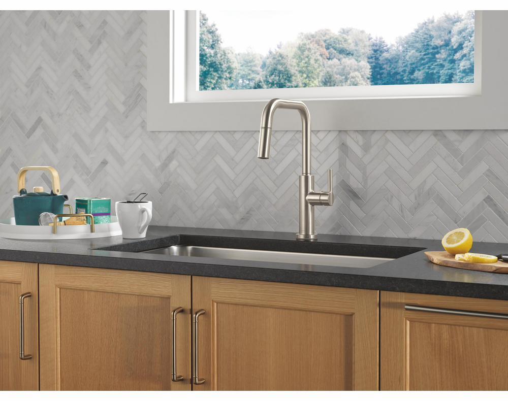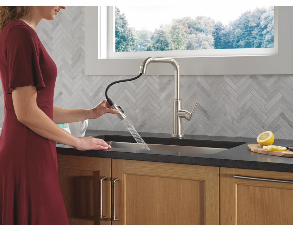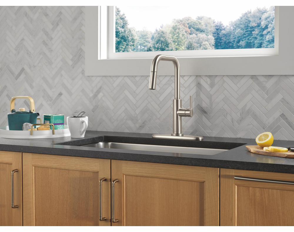 The Nicoli collection balances minimalist design trends with an elevated, sleek look that easily adapts to change as your style evolves. Delta MagnaTite Docking uses a powerful integrated magnet to set your pull down sprayer precisely into place and hold it there so it stays docked when not in use. Kitchen sink faucets with Touch-Clean Spray Holes allow you to easily wipe away calcium and lime buildup with the touch of a finger. You can install with confidence, knowing that Delta kitchen faucets are backed by our Lifetime Limited Warranty.