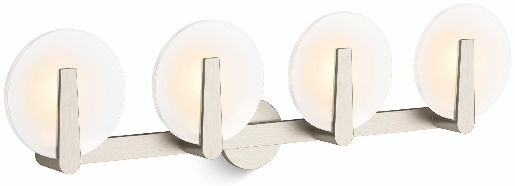 Minimalist in its design, the Hint lighting collection is a versatile style choice for both traditional and contemporary environments. This clean, elemental four-light sconce draws your attention to the soft glow of etched glass disks that gently diffuse light and give your room a calming warmth. Available in a variety of finishes to adorn any room in your home.