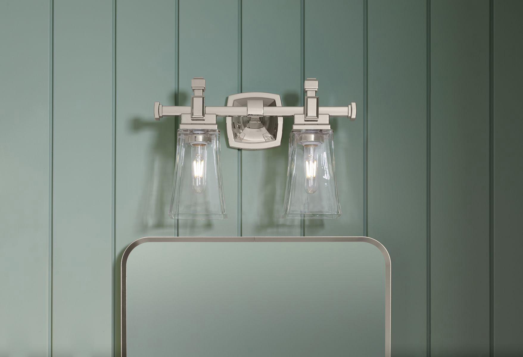 Inspired by the French and Spanish architecture of the historical American South, Riff collection lighting offers a contemporary interpretation of traditional Southern design. Distinct with square lines and bell-shaped shades, the collection's sconces, flush-mounts, and chandeliers will enrich your home decor with a timeless yet modern feel. The perfect blend of high style and thoughtful functionality, these lighting fixtures were designed to coordinate with the KOHLER® Riff faucet collection.