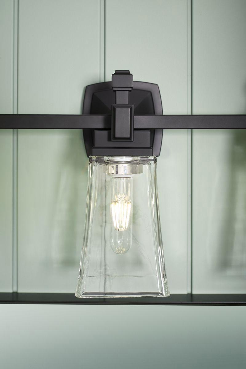 Inspired by the French and Spanish architecture of the historical American South, Riff collection lighting offers a contemporary interpretation of traditional Southern design. Distinct with square lines and bell-shaped shades, the collection's sconces, flush-mounts, and chandeliers will enrich your home decor with a timeless yet modern feel. The perfect blend of high style and thoughtful functionality, these lighting fixtures were designed to coordinate with the KOHLER® Riff faucet collection.