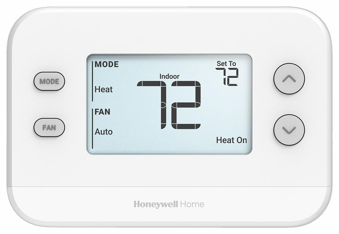 - Heat low limit defaults to 40°F (4°C) but configurable to 32°F (0°C) for garage applications