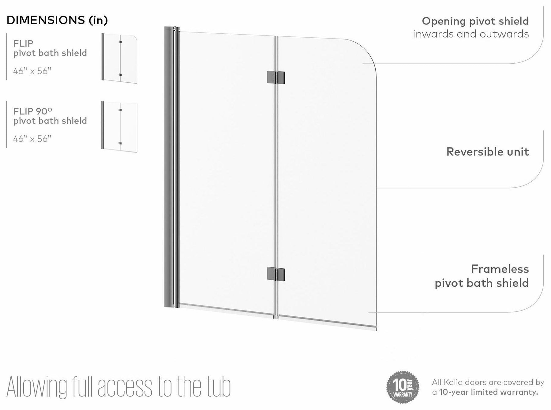 Flip 46" x 56" Pivoting Tub Shield - Brushed Nickel DR1230-120-000 Kalia