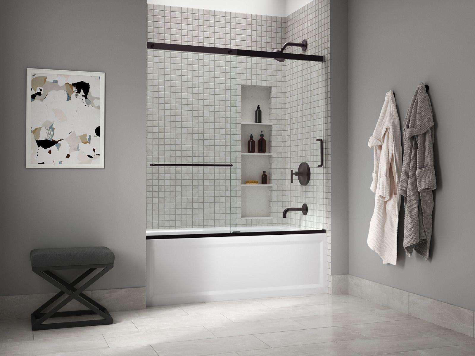 With a sleek, minimalist design, oversized rollers for best-in-class sliding action, and low-maintenance CleanCoat glass treatment, the KOHLER Elate bath door combines bold style with delightful functionality. Because Elate can be installed to open from the left or right, it fits easily into your bathroom layout, and 3/8" out-of-plumb adjustability on each side makes the Elate bath door easy to install. A large range glass types and finishes means there’s an Elate bath door waiting for you.