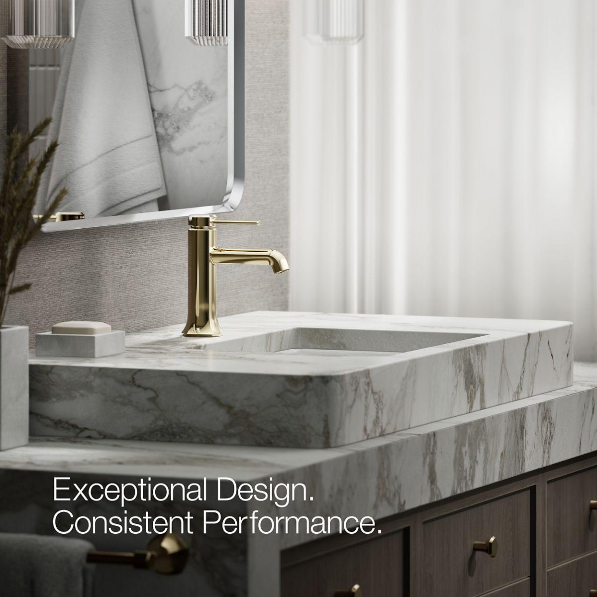 Unapologetically luxurious and truly unforgettable, Occasion bathroom faucets and accessories draw inspiration from 1960s Hollywood glamour and extravagance. Fashioned after the era’s sleek dress lines and bold car designs, the Occasion collection reflects graceful elegance, blending classic midcentury and modern design. Customize your bath with the collection’s distinctive pentagonal accents, faceted bases, flowing lines, and delicate edges. The 1.0 gpm single-handle sink faucet adds sleek style and function to your bathroom—all while conserving water.
