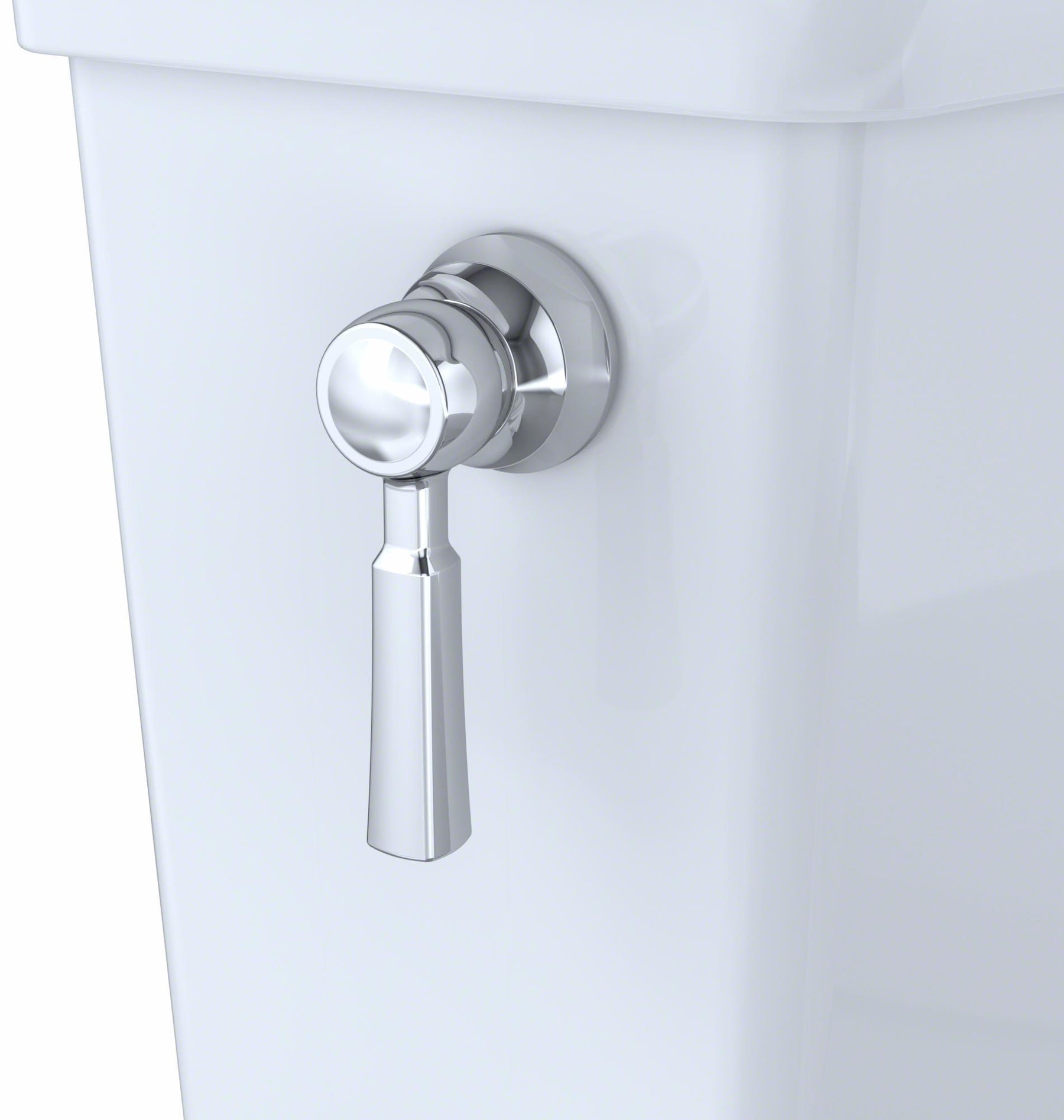 The TOTO Promenade II 1.28 GPF Toilet Tank is designed for use with the Promenade II bowl. The Promenade II tank includes a tank to bowl gasket, tank to bowl hardware, and toilet bolt caps. The tank features TOTO's Tornado Flush, a hole-free rim design with dual-nozzles that creates a centrifugal washing action that assists in rinsing the bowl more efficiently. This version of the tank comes equipped with a decorative left-hand chrome trip lever. The Promenade II meets the standards for EPA WaterSense, and California’s CEC and CALGreen requirements. Additional items needed for installation and use must be purchased separately: toilet bowl, wax ring, toilet mounting bolts, water supply lines, and toilet seat. The Promenade II ST403E tank can be used on the following bowls: C404CUFG and C404CUF.