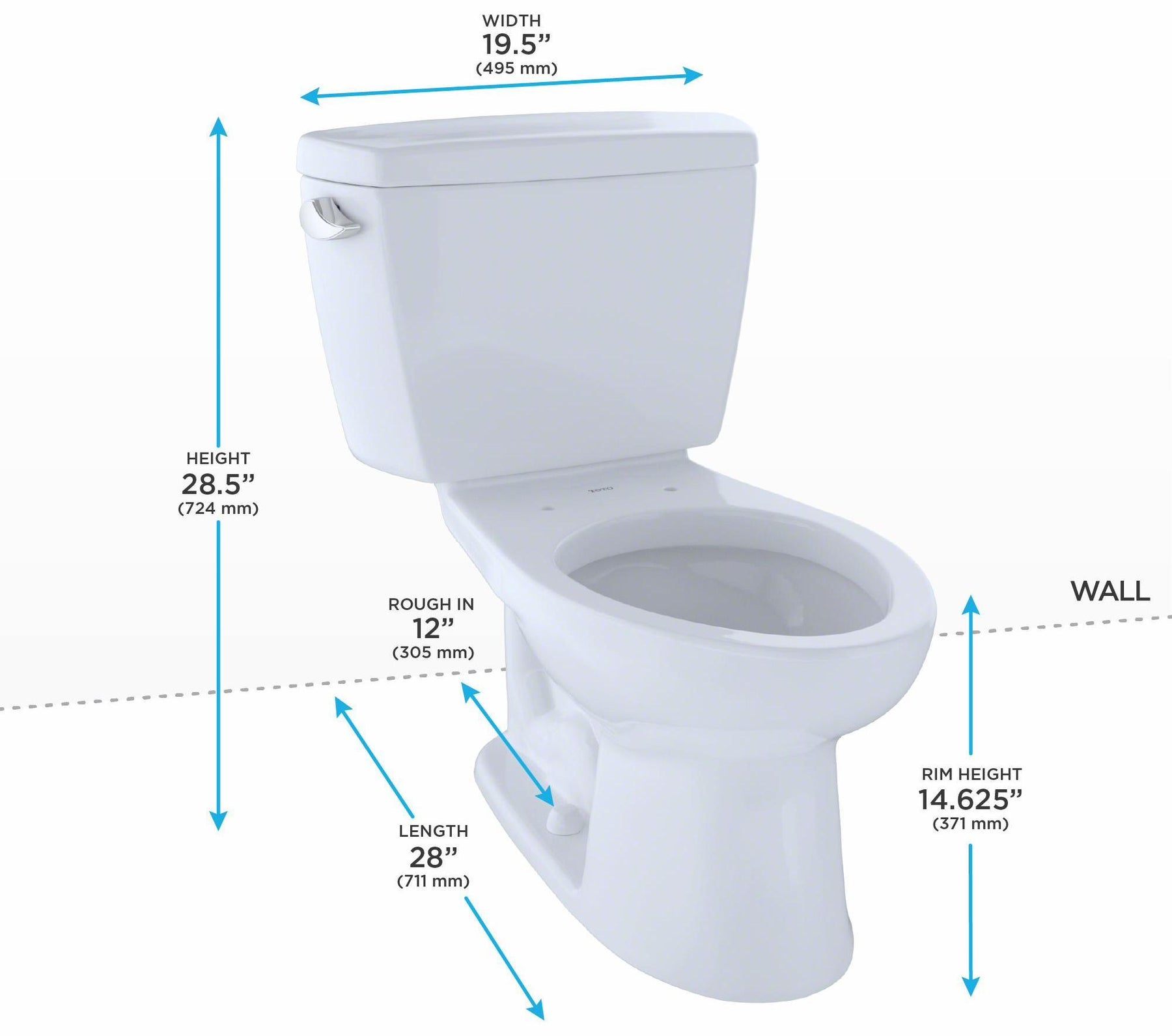 The TOTO Drake Two-Piece Elongated 1.6 GPF Toilet with CeFiONtect offers a high-profile design and is powerful and durable enough to work within both residential and commercial applications. The Drake bowl and tank set includes a tank to bowl gasket, tank to bowl hardware, and toilet bolt caps. The Drake utilizes TOTO’s G-Max® flushing system which features a 3” wide flush valve, extra-large siphon jet, and a large trapway. This reliable combination generates a powerful cleansing flush with 1.6 gallons of water. This version of the Drake features CeFiONtect, a layer of exceptionally smooth glaze that prevents waste from adhering to the ceramic. This feature assists to reduce the frequency of toilet cleanings, minimizing the usage of water, harsh chemicals, and time required for cleaning. This Drake comes with a left-hand chrome trip lever. Additional items needed for installation and use must be purchased separately: wax ring, toilet mounting bolts, water supply lines, and toilet seat.