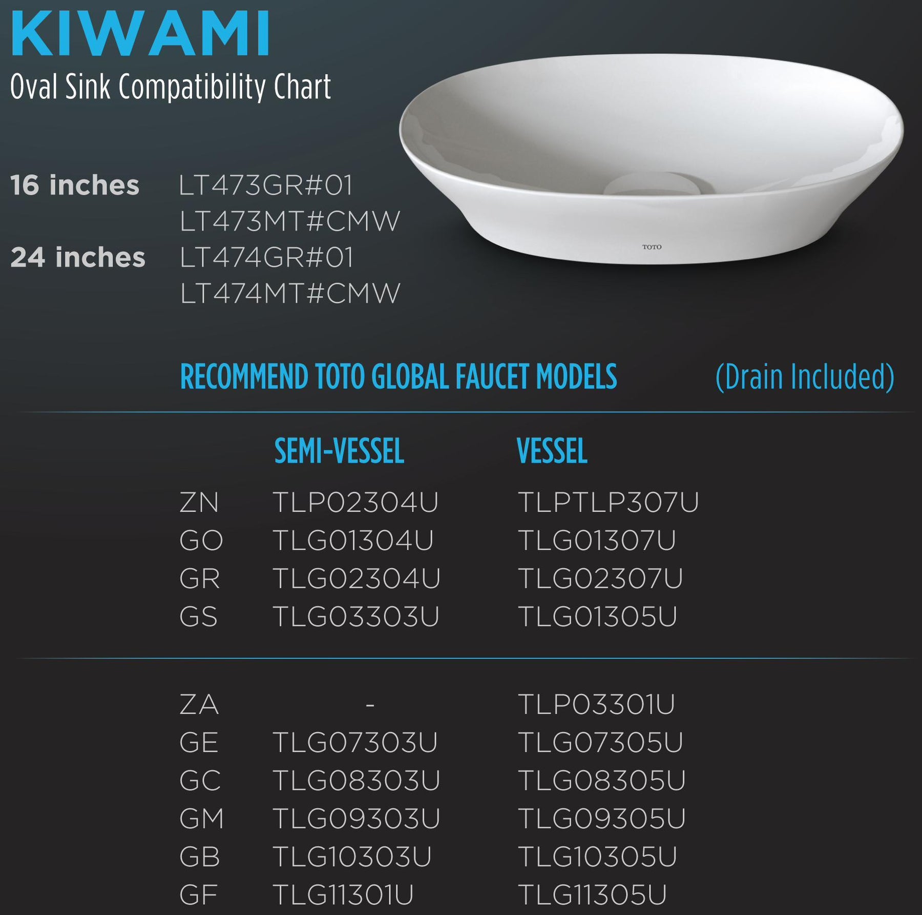 Upgrade your bathroom counter instantly with the TOTO Kiwami Oval Vessel Bathroom Sink. Designed with CEFIONTECT technology, the Kiwami oval sink is a modern and elegant sink that incorporates beautiful thin edges. CEFIONTECT glaze keeps your sink cleaner longer by minimizing waste from sticking to the surface of the sink. Crafted with the extremely smooth and durable Linear Ceram material and completed with a beautiful CLEAN MATTE finish. For use with included grid drain assembly only. The Kiwami Vessel sink is ADA compliant. Includes drain, decorative drain cover, and installation template. Faucet sold separately. Recommend using faucet with maximum height of 8 inches.