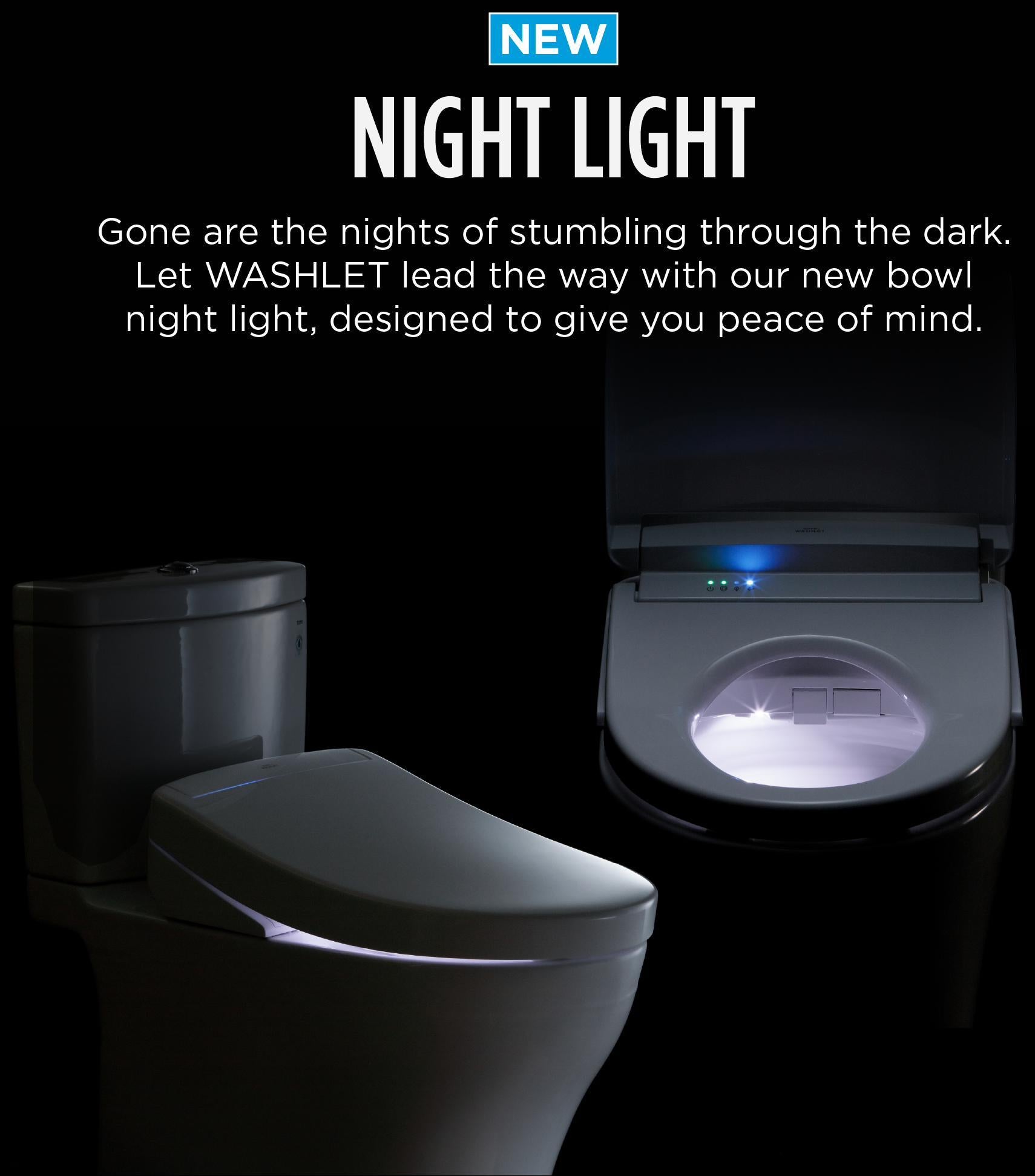 • Built in nightlight fills the bathroom with a soft, illuminating glow