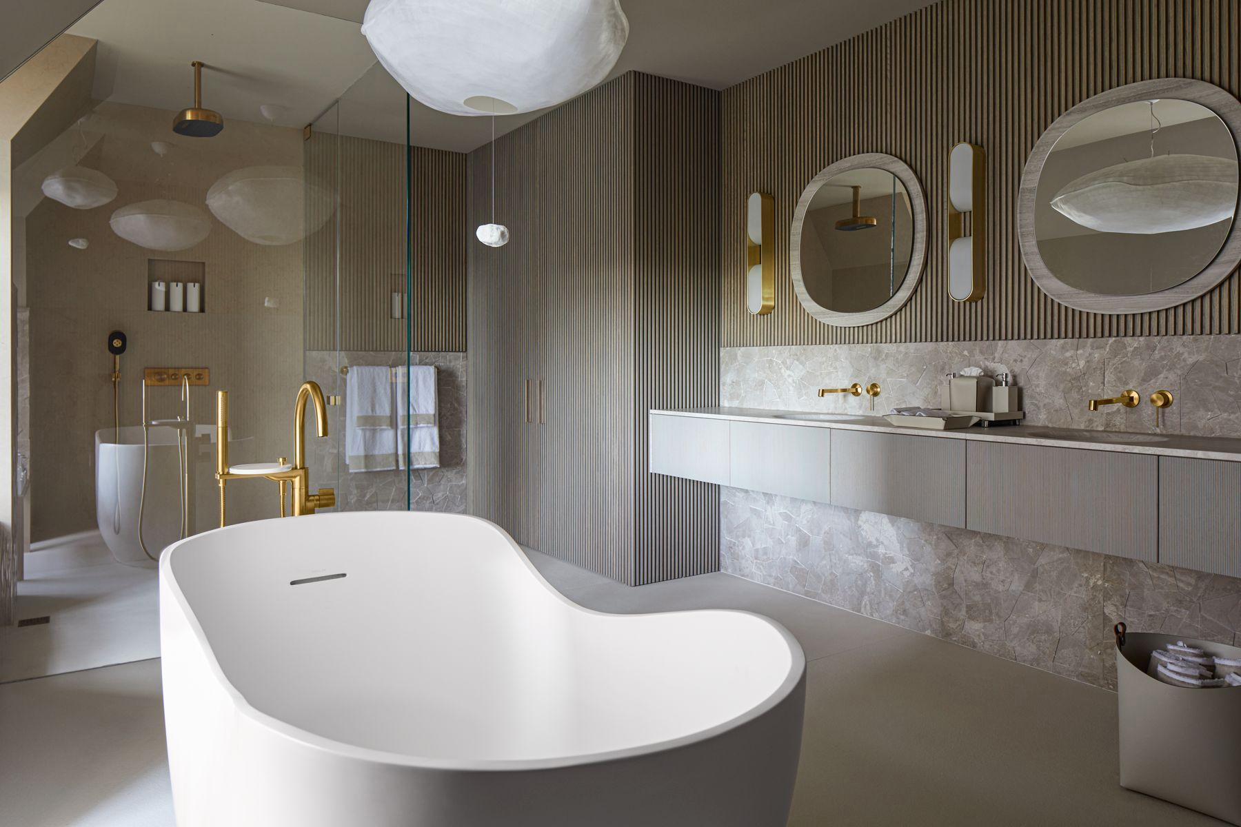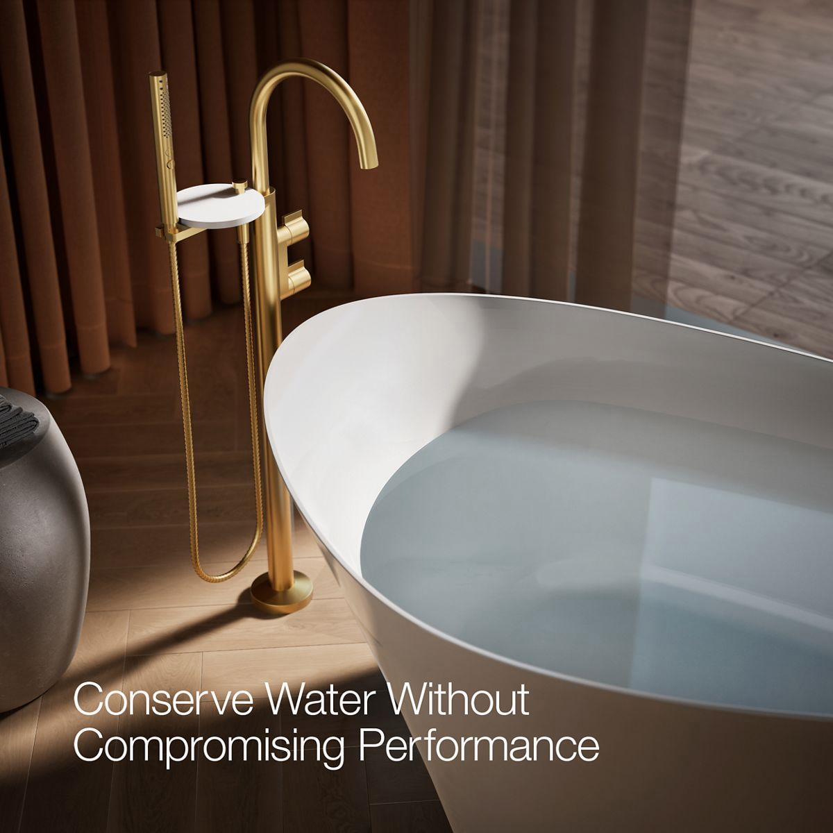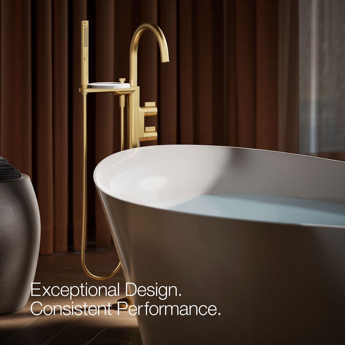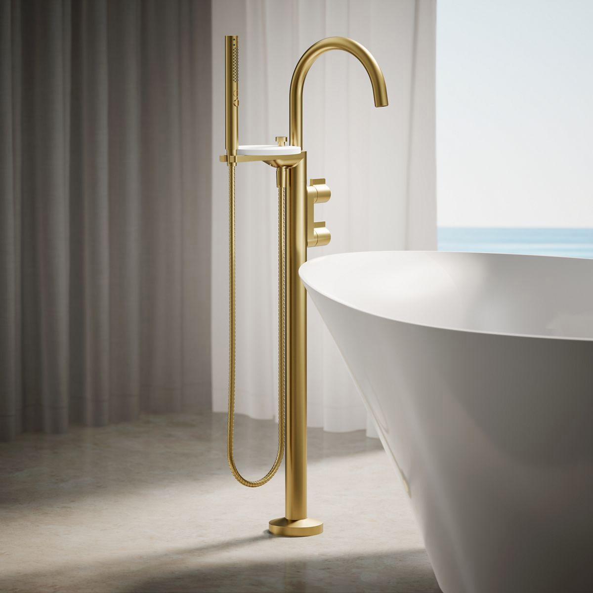 Components Floor Mount Tub Filler Trim With Lever Handles and Hand Shower - Vibrant Brushed Moderne Brass T77984-4-2MB Kohler