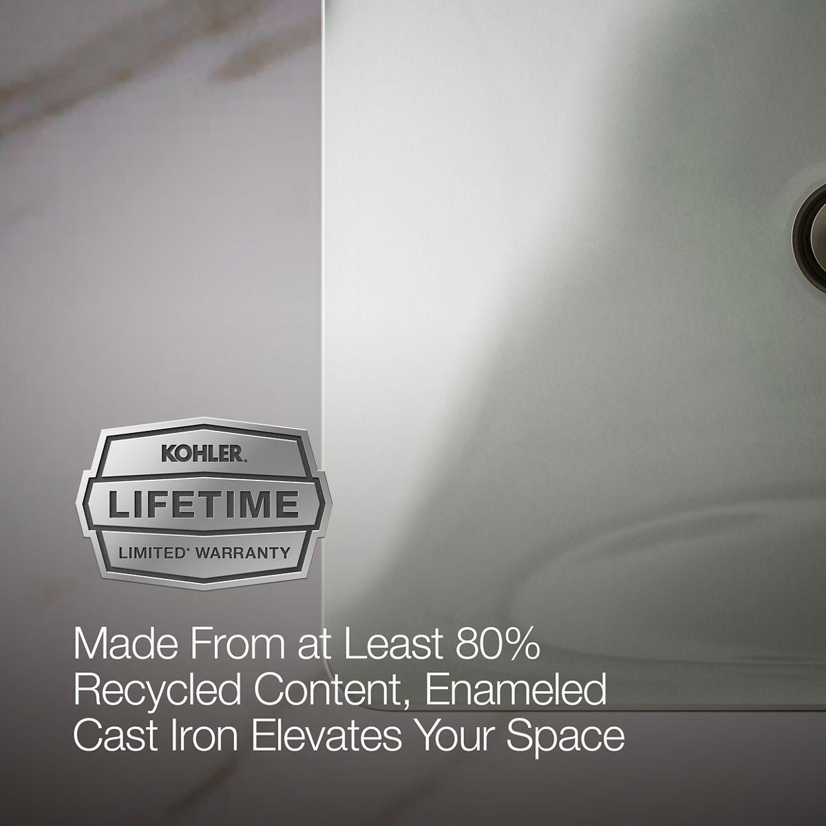 With its gently curved, organic shape, the Iron Plains sink combines distinctive style with the extreme durability, strength, and vintage soul of KOHLER enameled cast iron. Two installation options - drop-in or under-mount - make this sink a flexible choice for a wide range of bathroom configurations.