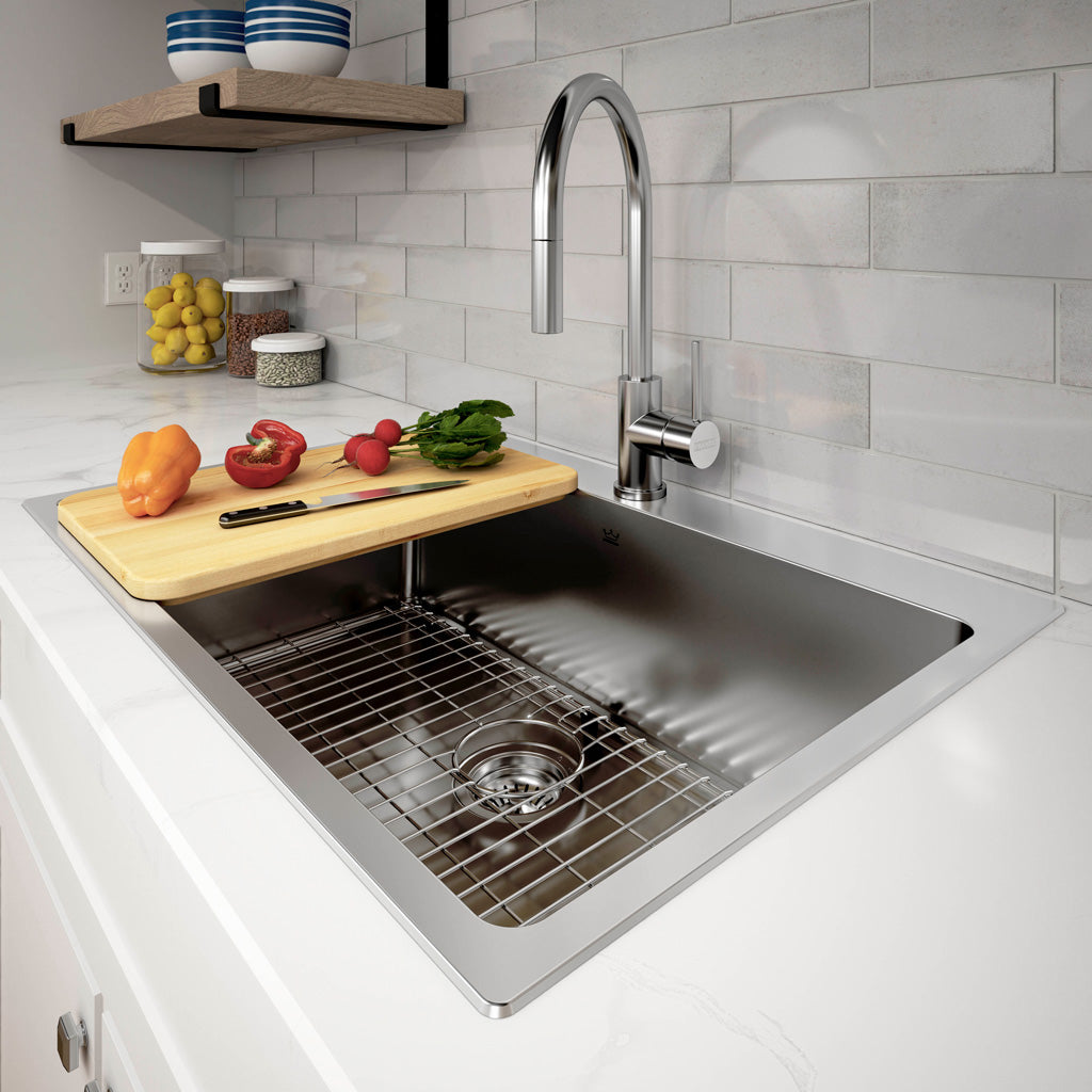 Quick and hassle-free installation means you can enjoy your new sink even sooner. Kindred's patented EZ Torque system is an innovative fastener that secures the rim of your topmount sink tight to your countertop. With an easy drop-and-drill process, you can install a Kindred drop-in sink in a few simple steps.