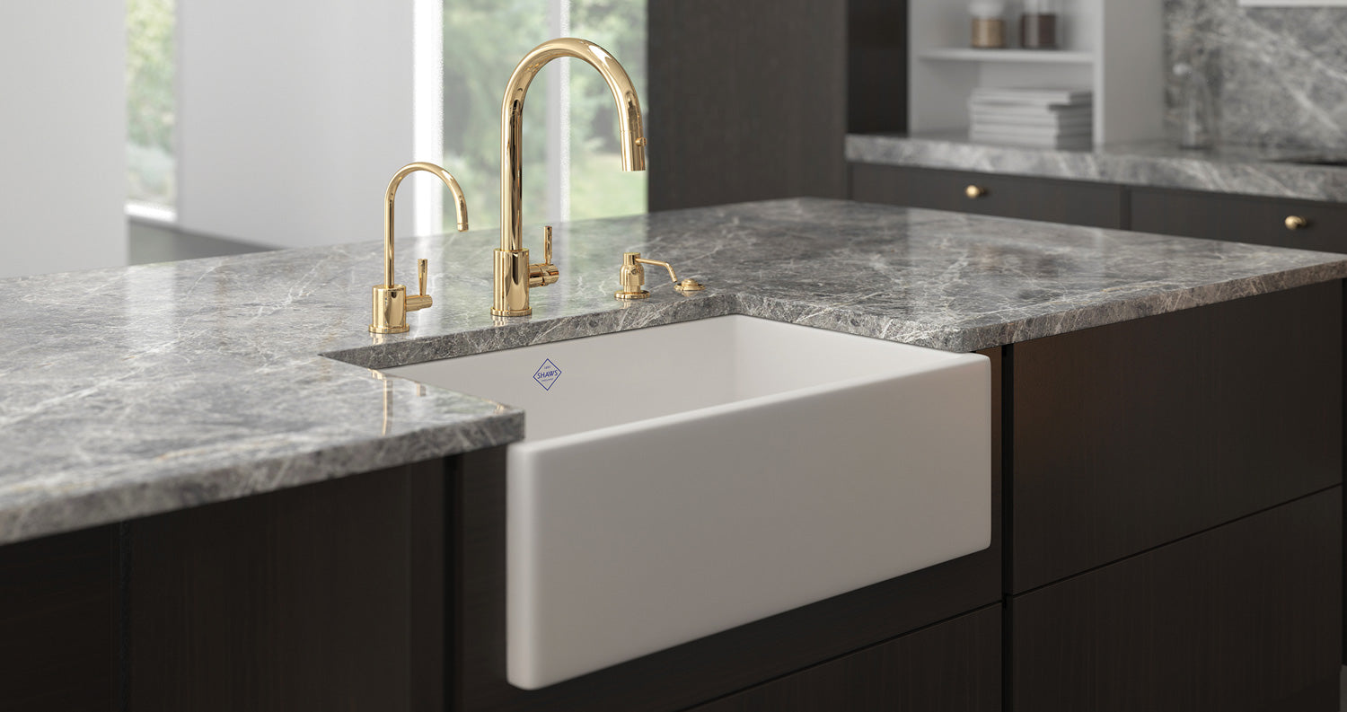 Shop premium fireclay kitchen sinks for Canadian homes and discover why Shaws has been trusted by homeowners for over 125 years. Complete your kitchen with Perrin & Rowe faucets and soap dispensers—luxury fixtures that pair beautifully with Shaws fireclay sinks for a timeless and elegant look.