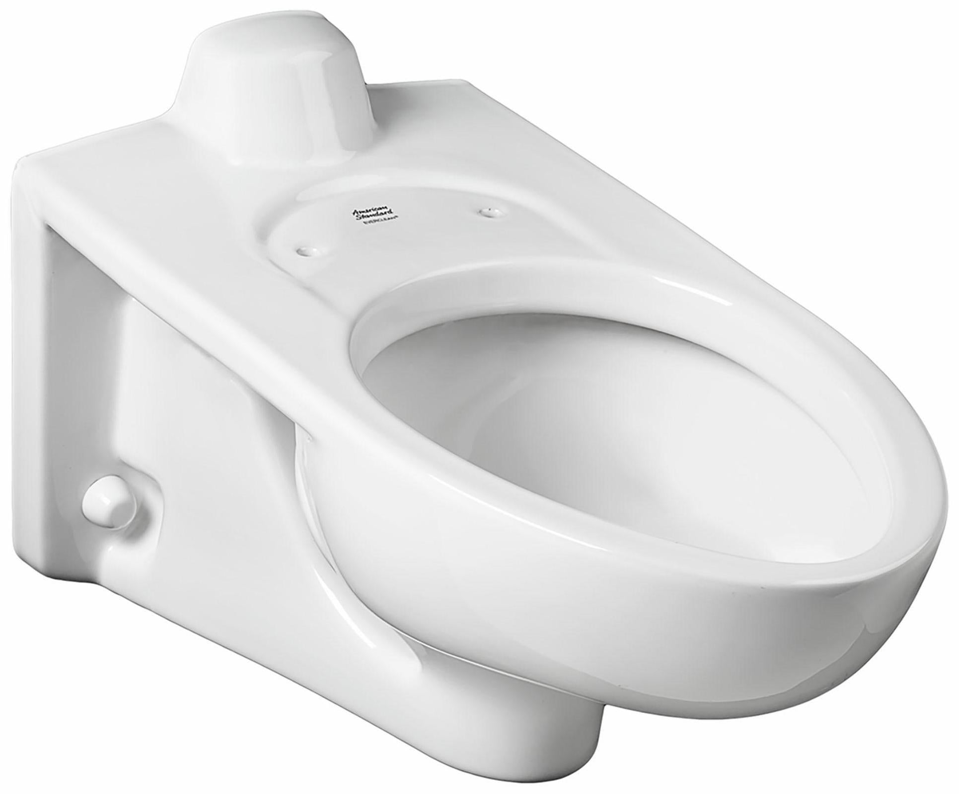 Introducing the new Afwall® Millennium™ FloWise® wall-hung toilet line from American Standard. Our reliable and dependable wall-hung toilet is now even better and more powerful with a premier flushing performance at lower flush volume, increased static weight load capacity, and streamlined design. High Efficiency, Low Consumption. Meets definition of HET (High Efficiency Toilet) when used with a high efficiency flush valve (1.1 gpf -1.6 gpf or 1.28/1.1 gpf dual flush). 10" x 12" water surface area. 100% factory flush tested System. MaP Score: - 1,000 grams of miso @ 1.1 gpf to 1.6 gpf when used with an American Standard flush valve - Maximum Performance (MaP) testing performed by IAPMO R&T Lab. MaP Report conducted by Veritec Consulting, Inc.and Koeller and Company.  Nominal Dimensions:  660 x 356 x 381 mm (26" x 14" x 15"). Recommended working pressure– between 25 psi at valve when flushing and 80 psi static. Fixture only, less seat, bolt caps, and flushometer valve. Compliance Certifications - Meets or Exceeds the Following Specifications:- ASME A112.19.2/CSA B45.1 for Vitreous China Fixtures. This product is not recommended for bariatric use.