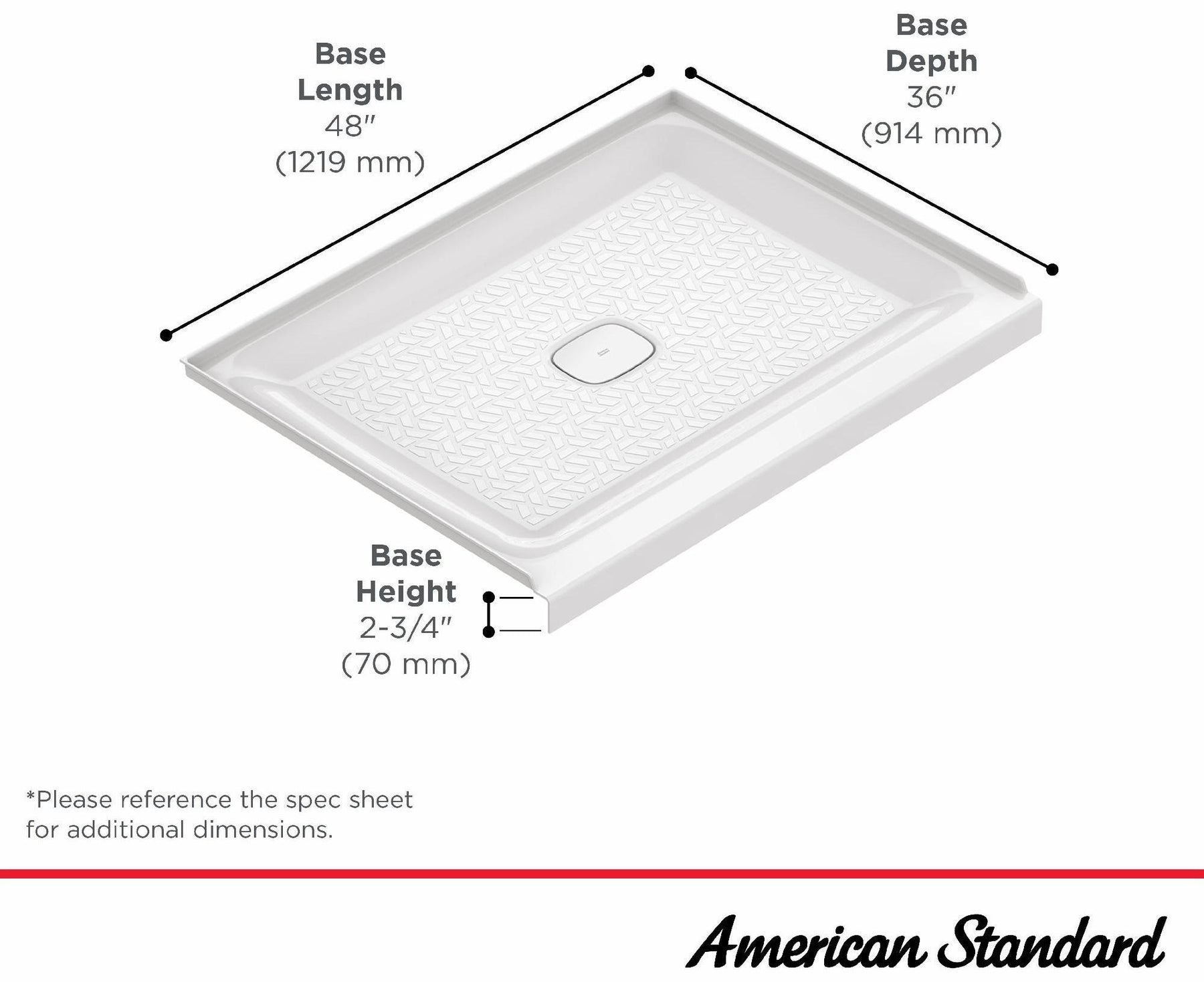 The Aspirations Shower Base from American Standard coordinates perfectly with the Aspirations bath collection. Designed with safety in mind, the shower base features a low threshold for ease when entering and exiting, in addition to a textured floor to help reduce the chance of slipping. Stain-resistant surface inhibits the growth of mildew for easy cleaning.
