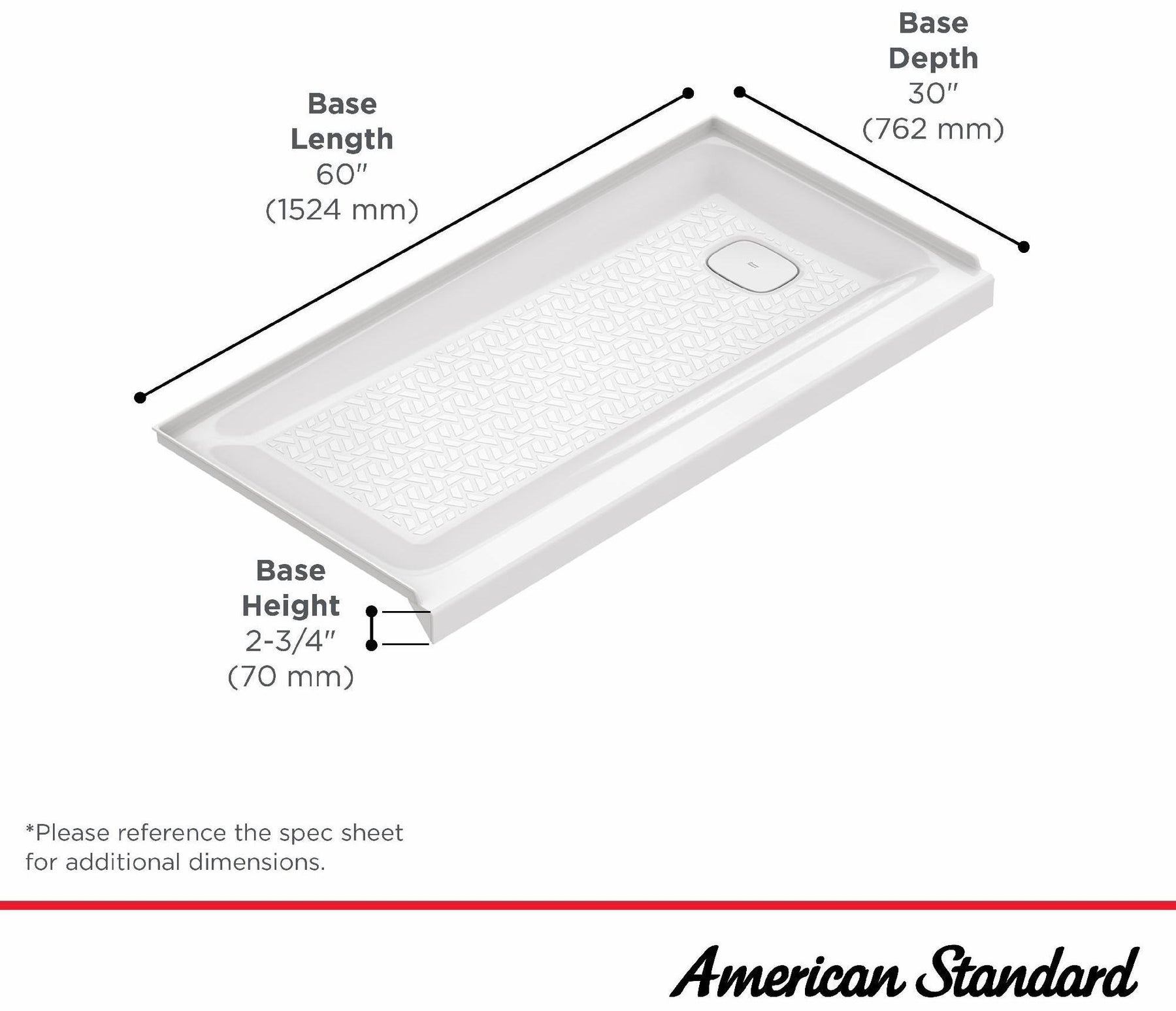 The Aspirations Shower Base from American Standard coordinates perfectly with the Aspirations bath collection. Designed with safety in mind, the shower base features a low threshold for ease when entering and exiting, in addition to a textured floor to help reduce the chance of slipping. Stain-resistant surface inhibits the growth of mildew for easy cleaning.