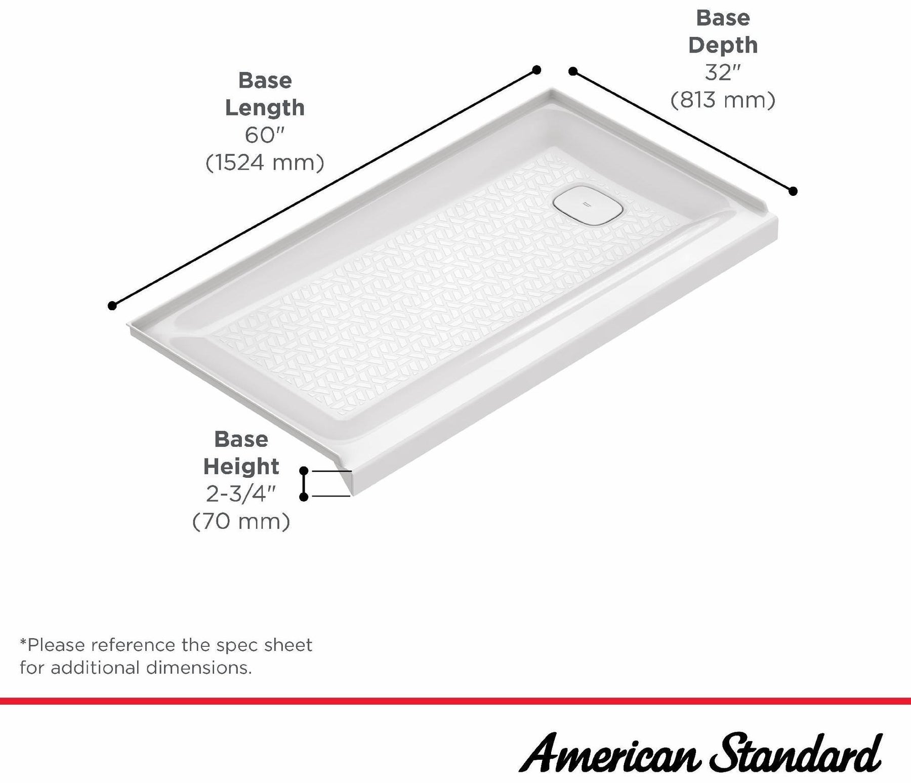 - LOW THRESHOLD DESIGN: The 2 ¾-in. height makes it easy and safe to step in and out of the shower