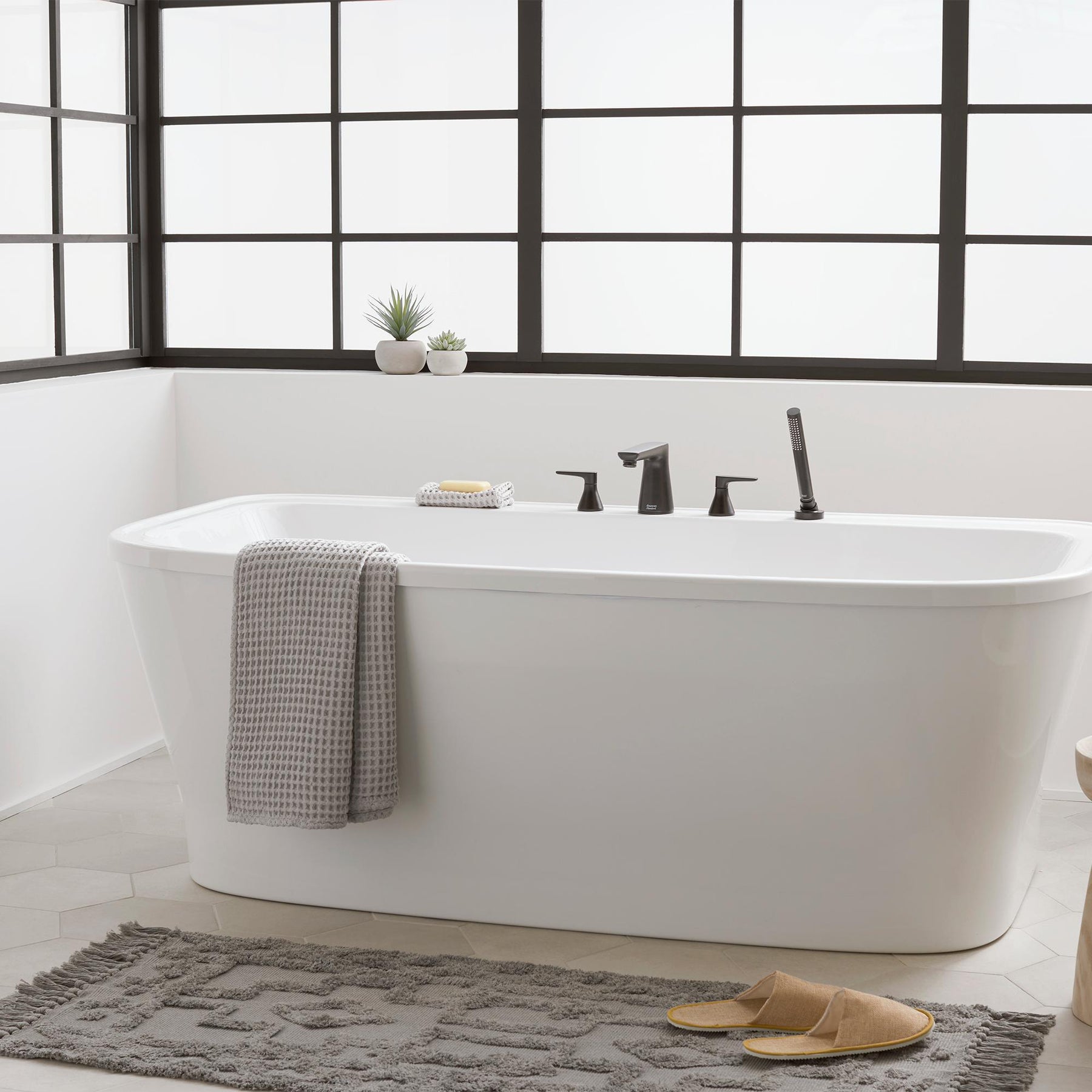 - CREATE A CONTEMPORARY RETREAT: Elegant freestanding bathtub offers the complete relaxation of a deep, satisfying soak with color-matched white slotted overflow and drain that allow for an additional 2-in. water depth
