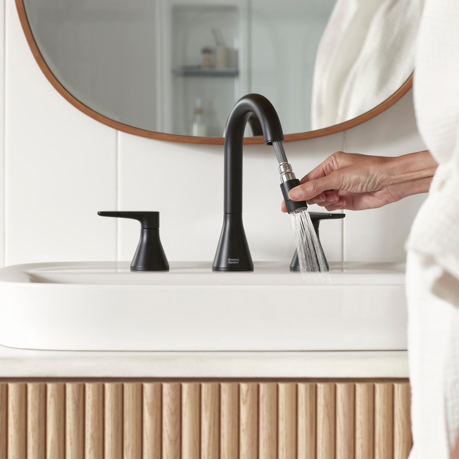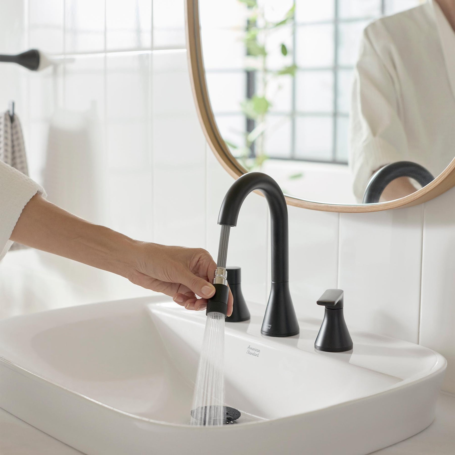 - ACCOMMODATES FAUCET: Three-hole design for use with an 8-in. widespread faucet
