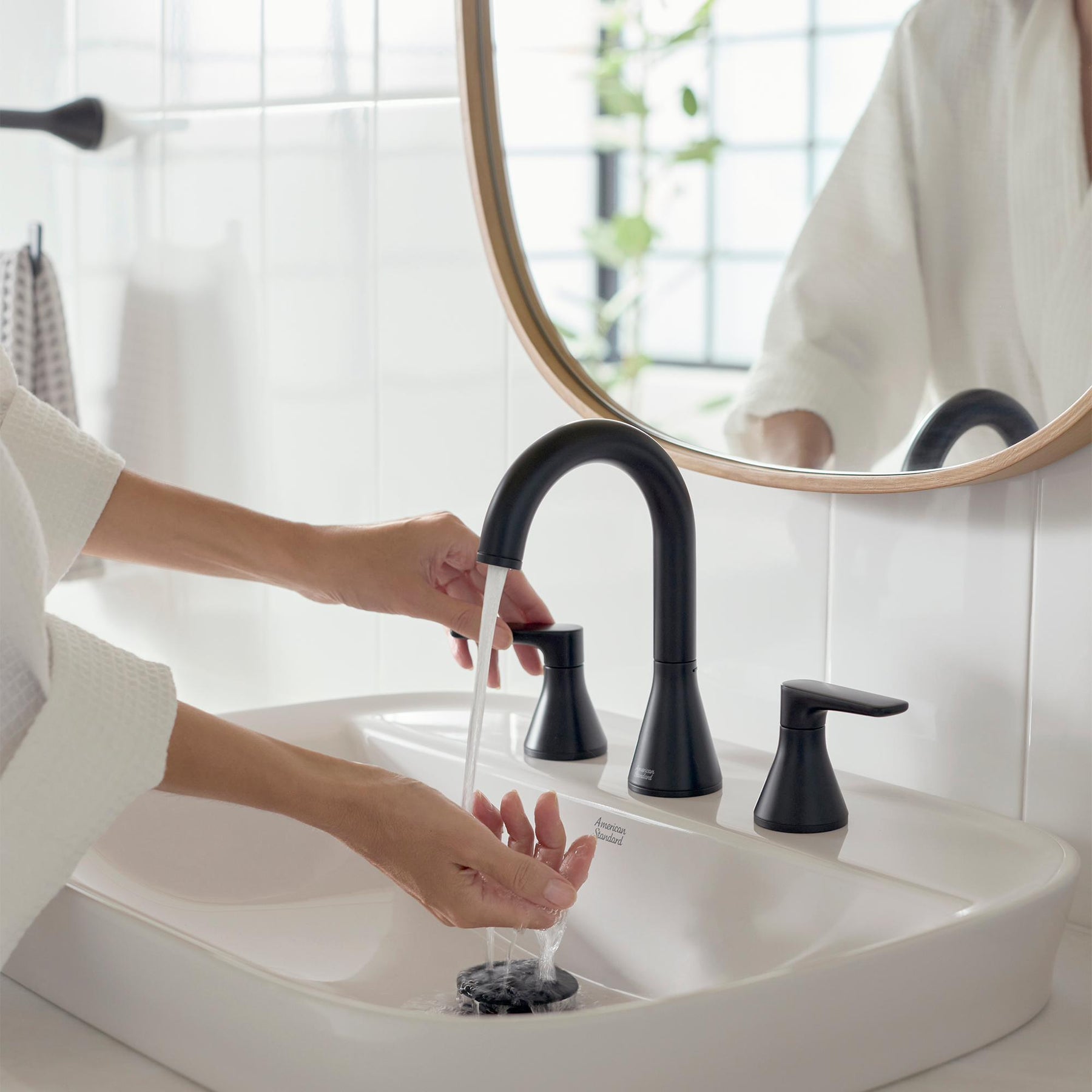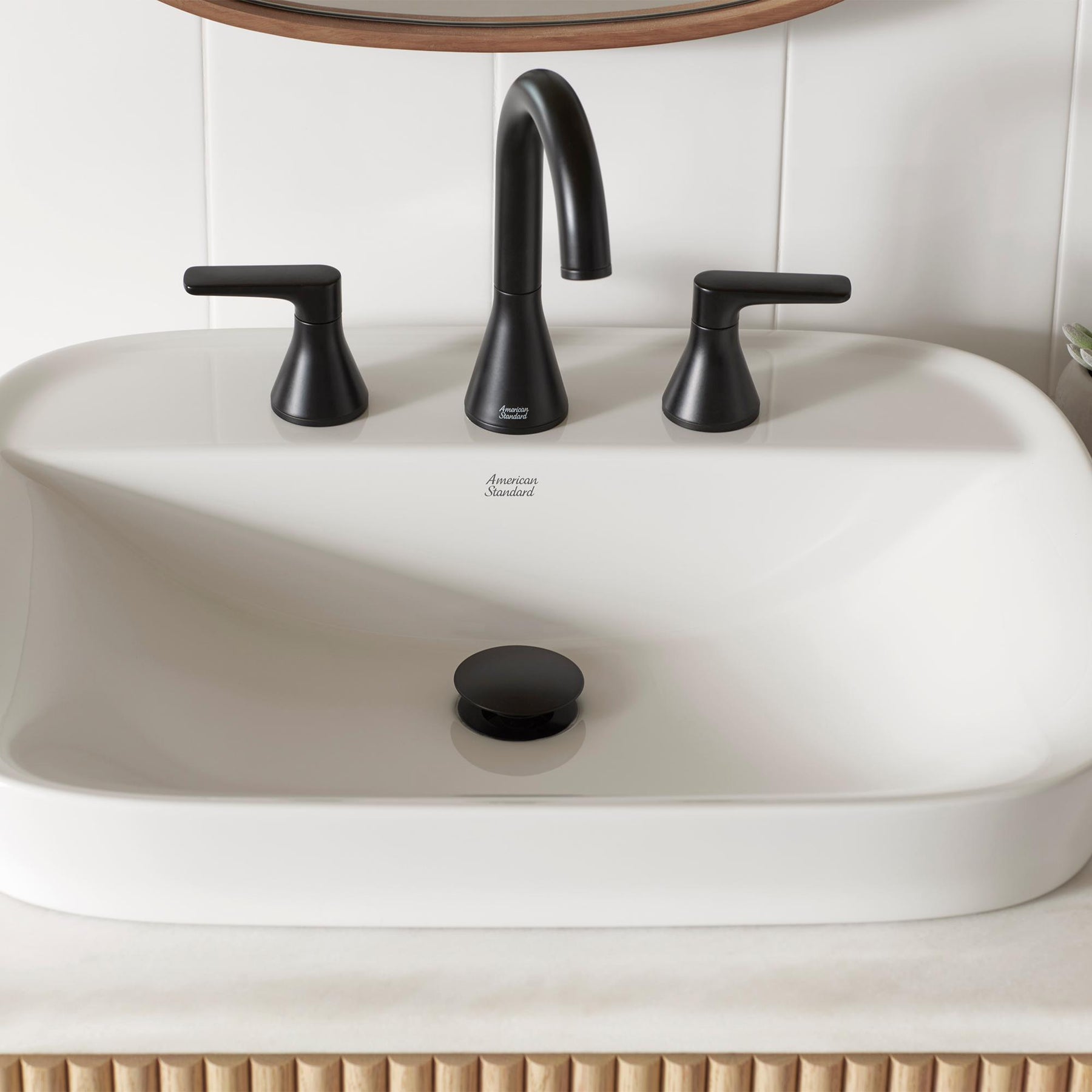 The Aspirations Semi-Recessed Bathroom Sink from American Standard is a sought-after style in today’s bathroom. Offering the look and appeal of a vessel sink with a lower profile, the semi-recessed sink is mounted partially above the countertop and partially below, providing added space for storage in the vanity underneath. Designed to accommodate an 8-in. widespread faucet, the Aspirations semi-recessed sink creates more space on the countertop and easier cleaning around the sink. Made of glossy vitreous china, this contemporary sink features an EverClean® surface to inhibit the growth of bacteria, mold and mildew. The Aspirations semi-recessed bathroom sink is designed to coordinate perfectly with the entire Aspirations collection.