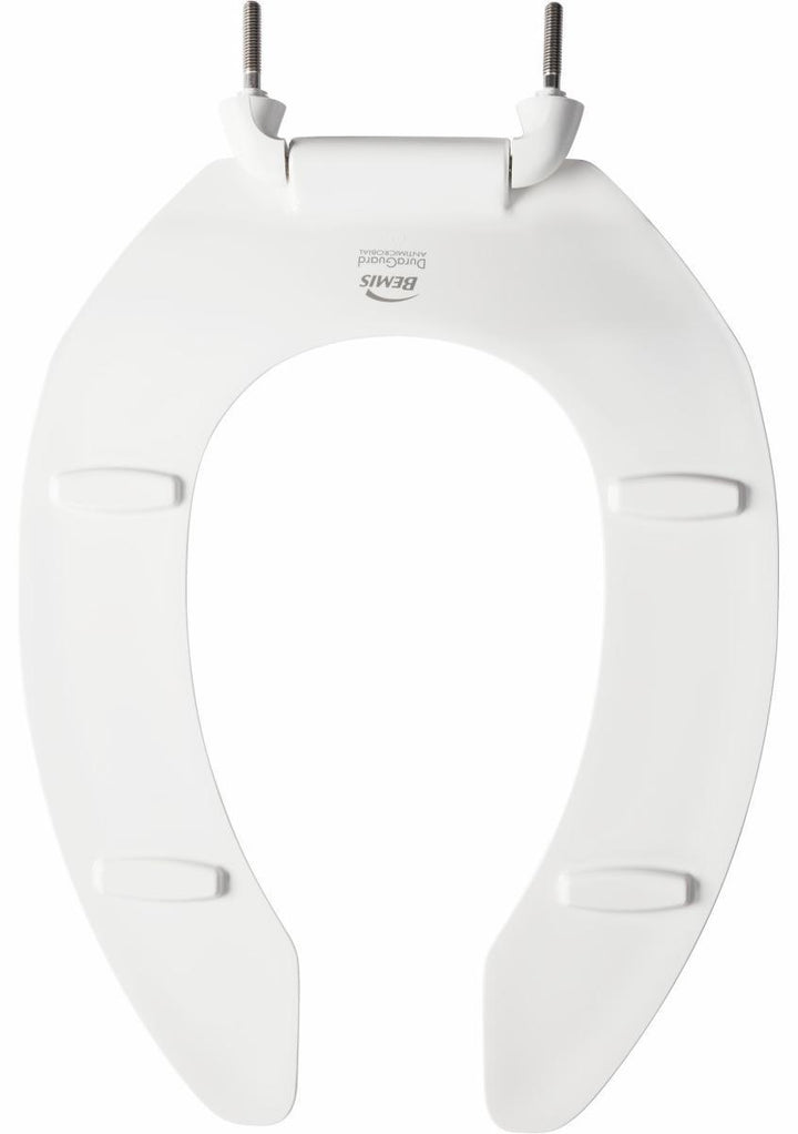 This heavy duty open front less cover seat is ideal for any commercial application. Made from durable plastic, the seat resists chips, wears and stains. The STA-TITE Commercial Fastening System cuts installation time by one third and prevents toilet seat loosening.