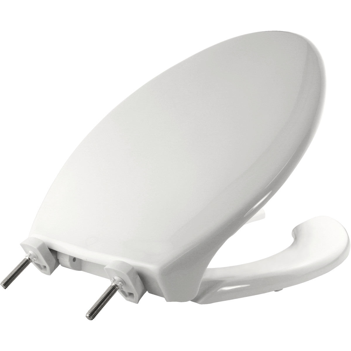 Elongated Open Front Hospitality Plastic Toilet Seat With Cover and STA-TITE Hinges - White 7850TDG 000 Bemis