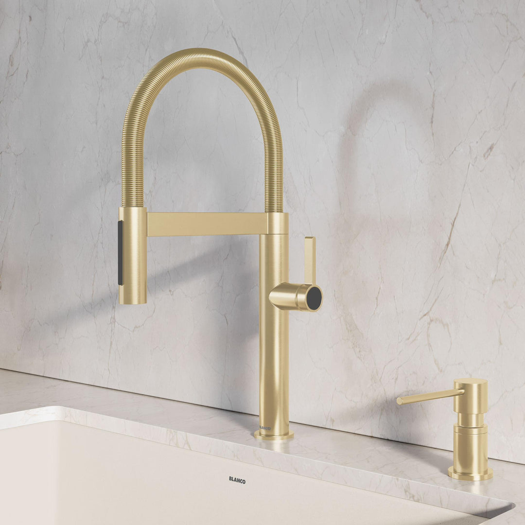 BlancoCulina II Mini Pre-Rinse Kitchen Faucet with Spring Pulldown Spray - PVD Satin Gold 527483 Blanco