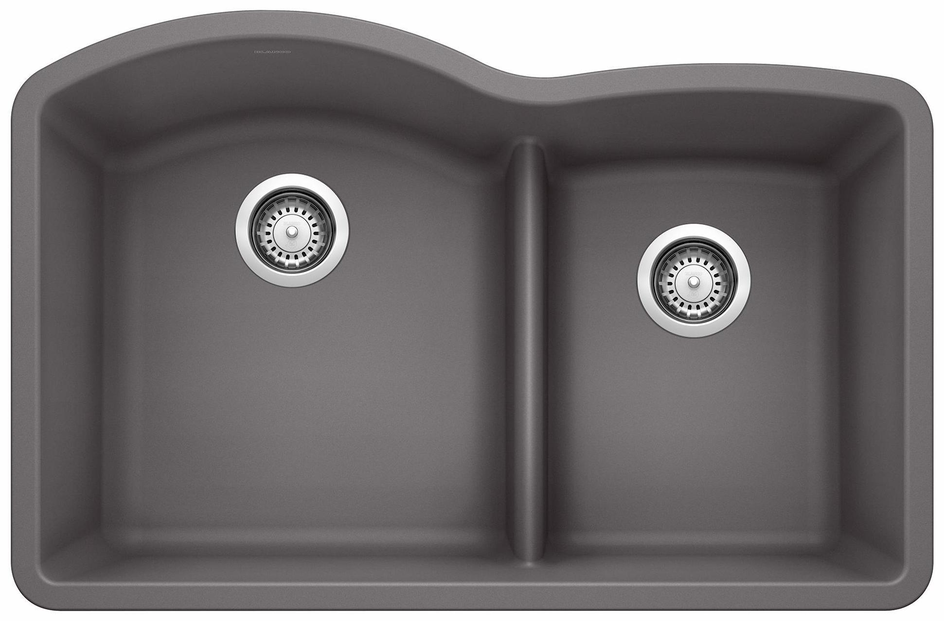 Diamond U 1.75 Bowl Low Divide Undermount Silgranit Sink - Cinder 401574 Blanco