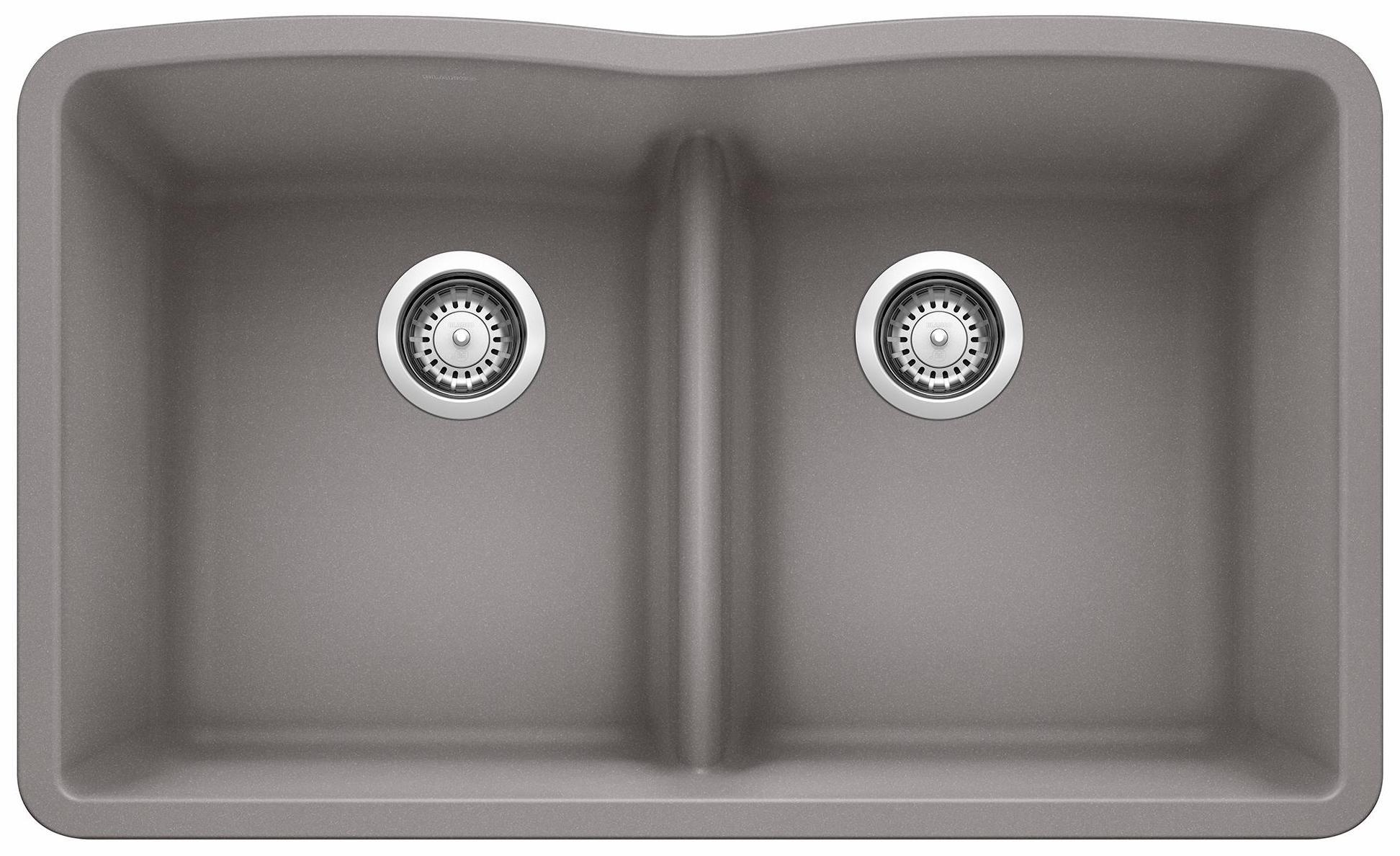 Diamond U 2 Bowl Low Divide Undermount Silgranit Sink - Metallic Gray 401840 Blanco